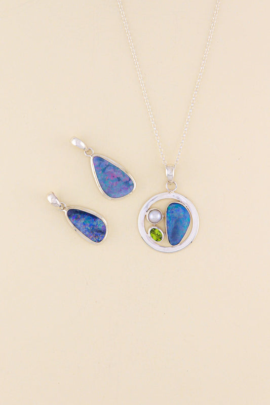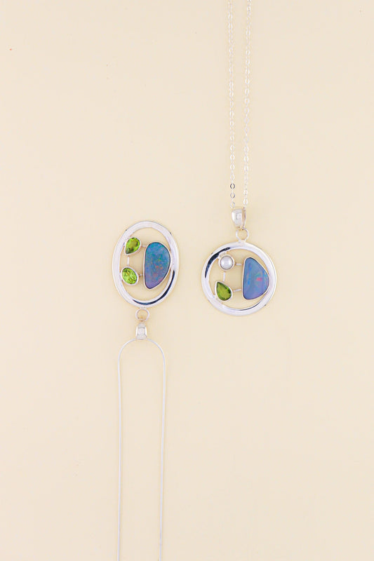 Australian Opal, Peridot and Freshwater Pearl Pendant | OPLM7