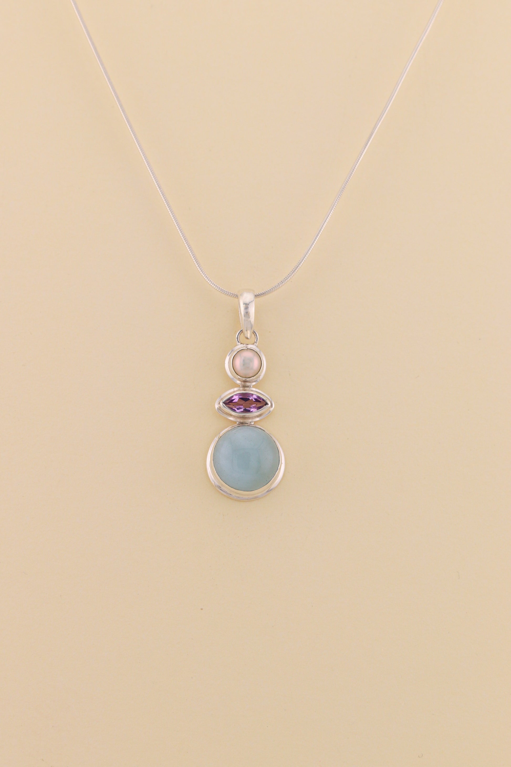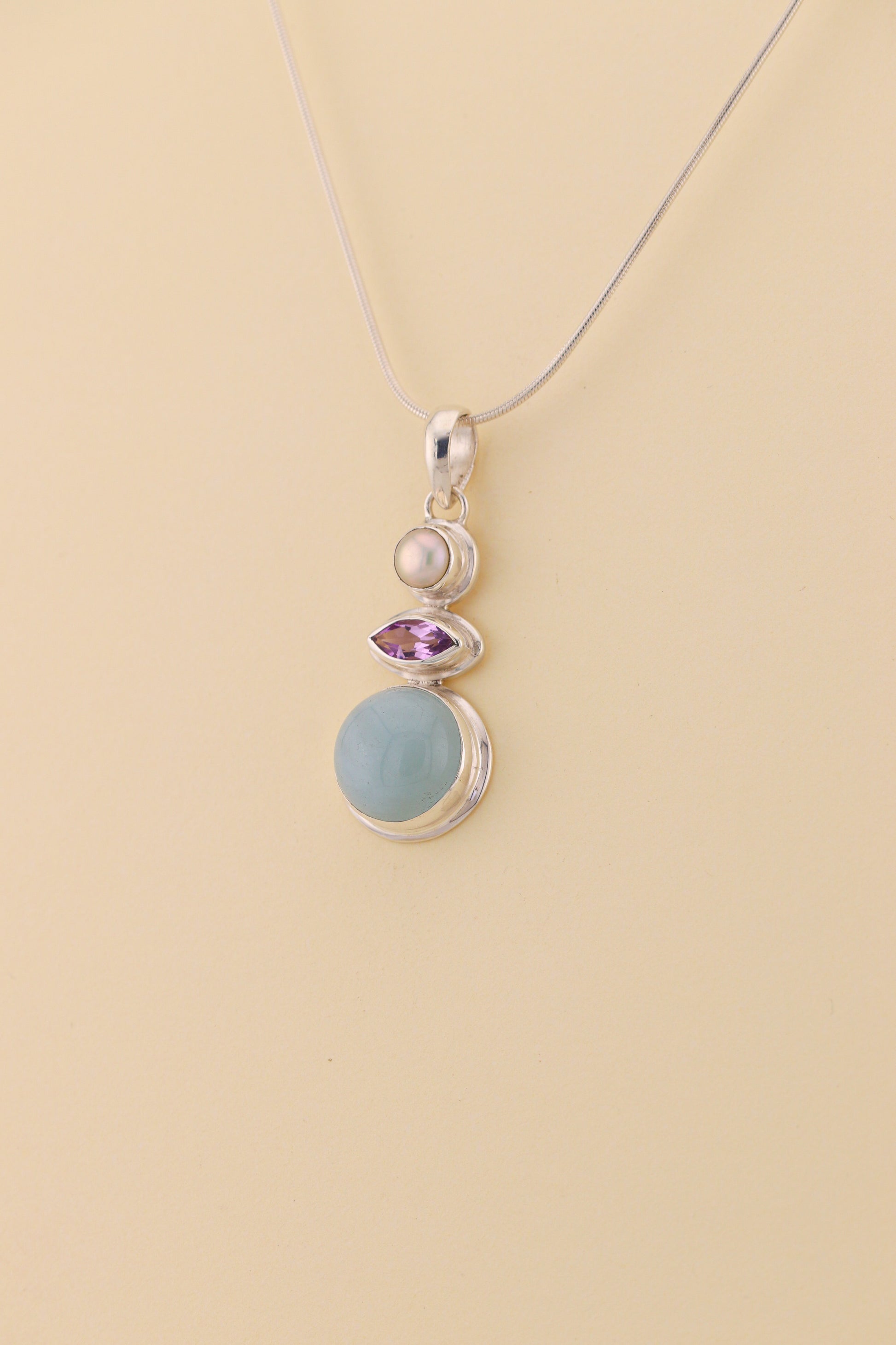Aquamarine, Amethyst and Fresh water Pearl Pendant | AQPM4