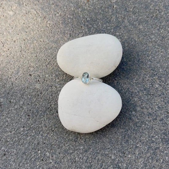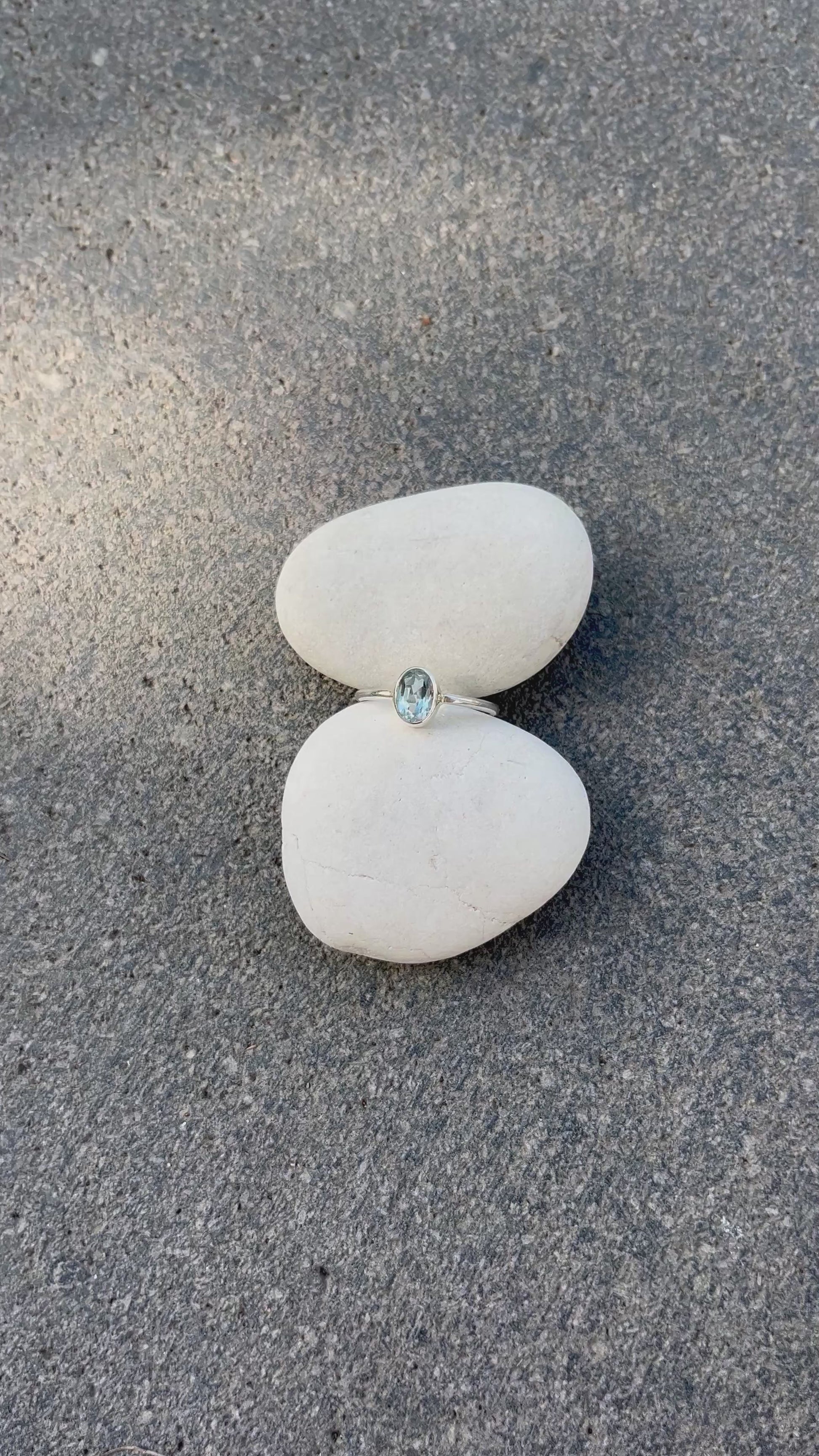 Our Aquamarine ring in small. Also exists in medium. The ring is made with 925 sterling silver.