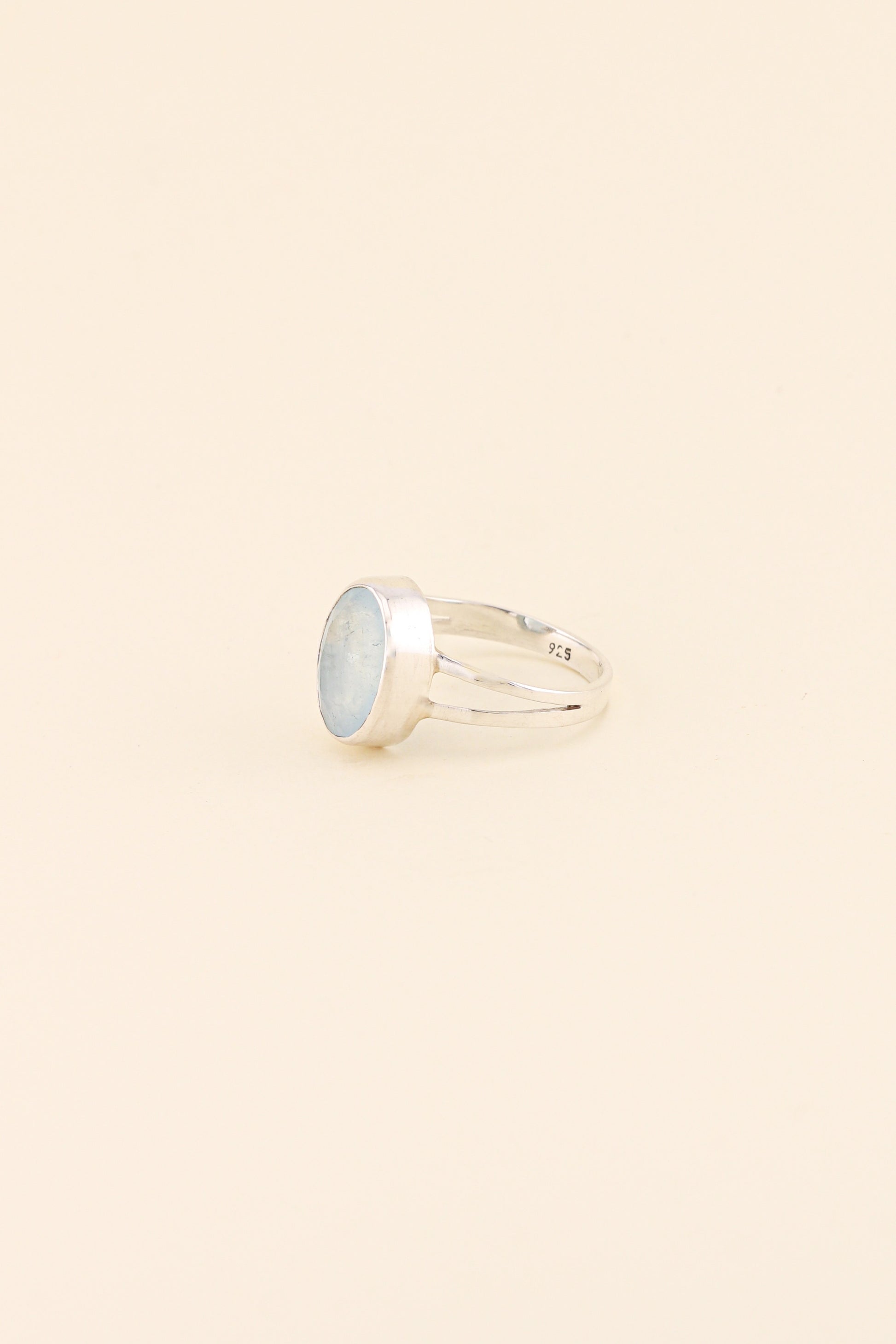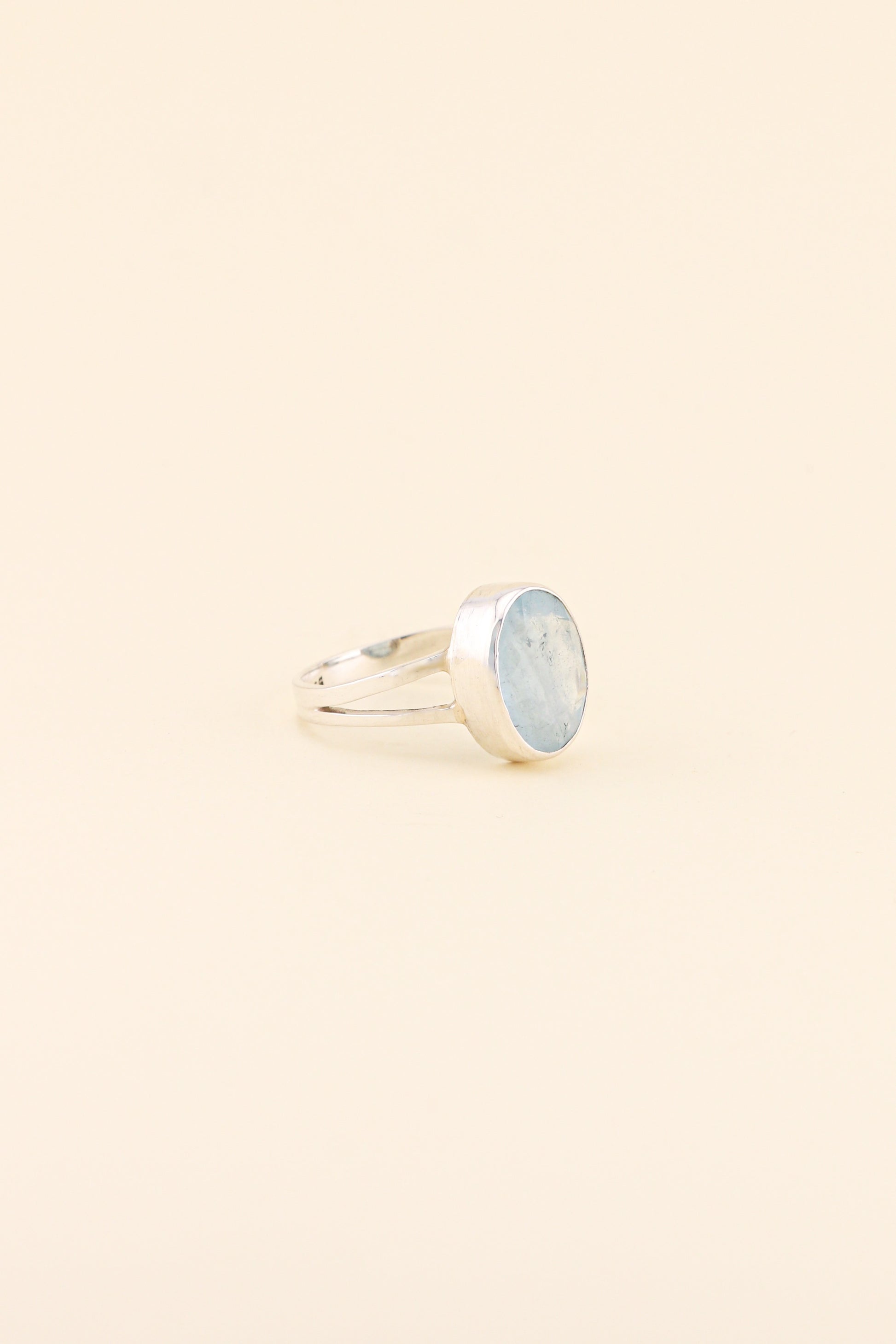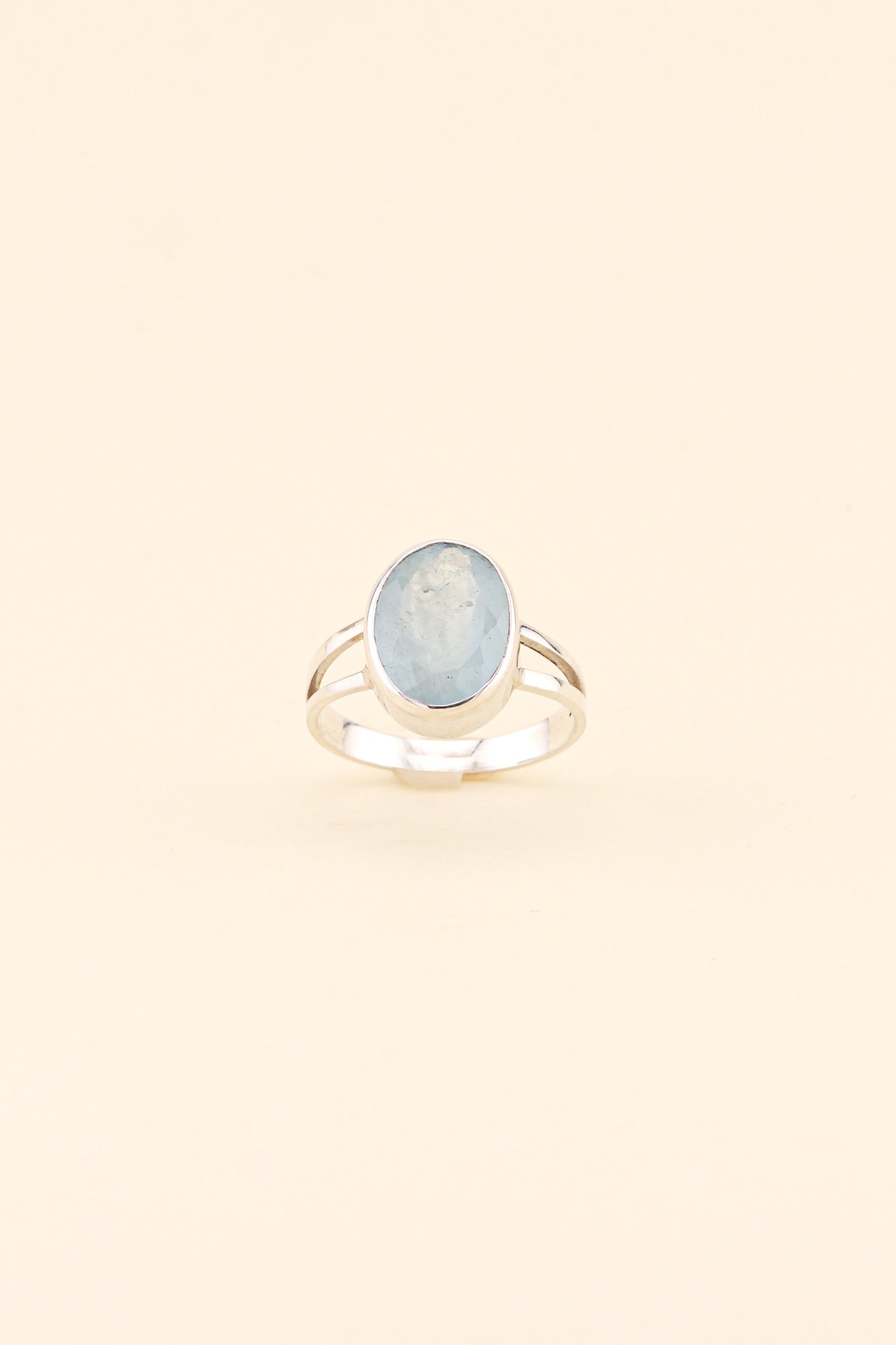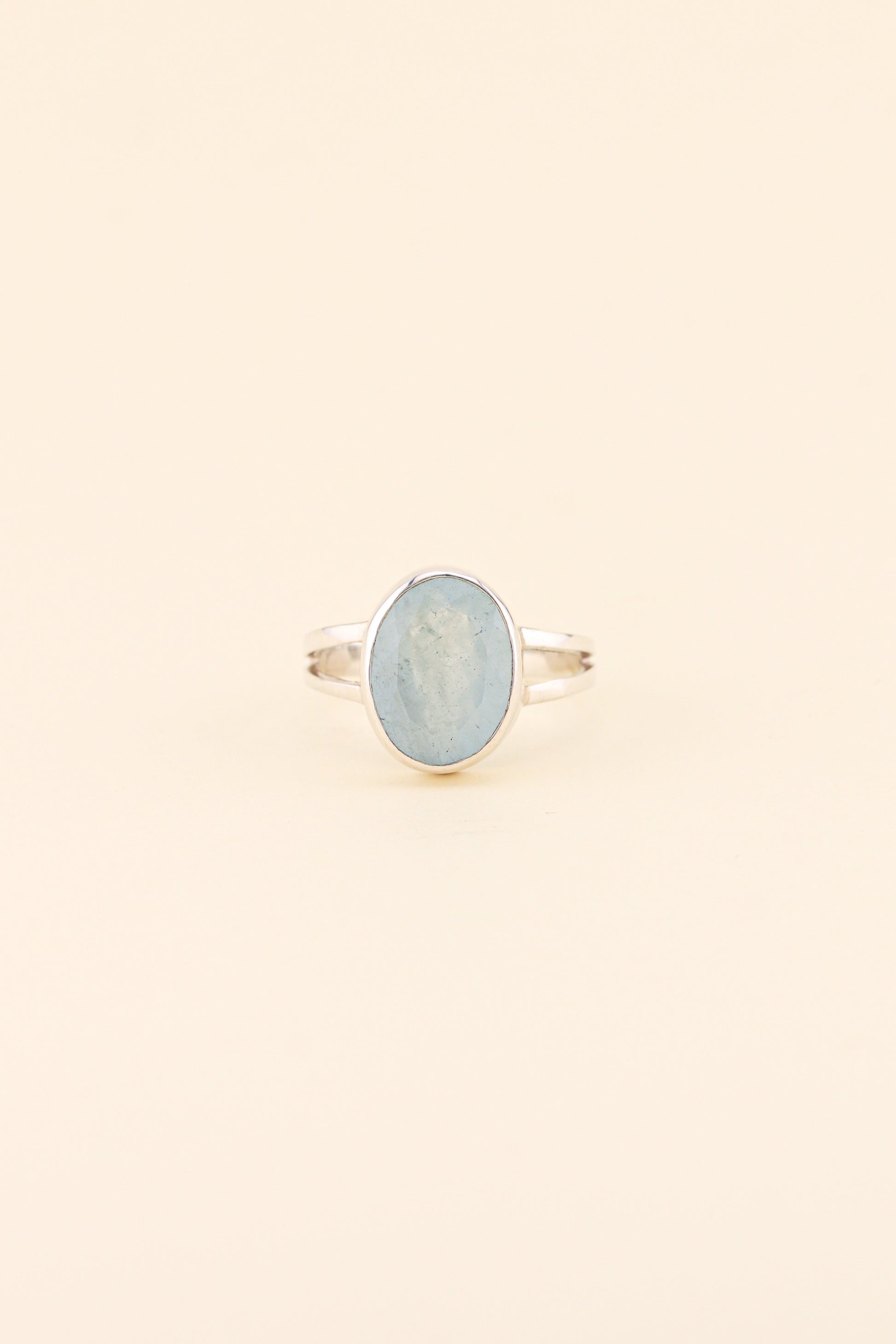 Our double band ring design in beautiful faceted Aquamarine. The stone shows inclusions which makes it unique. The ring is made with 925 sterling silver.