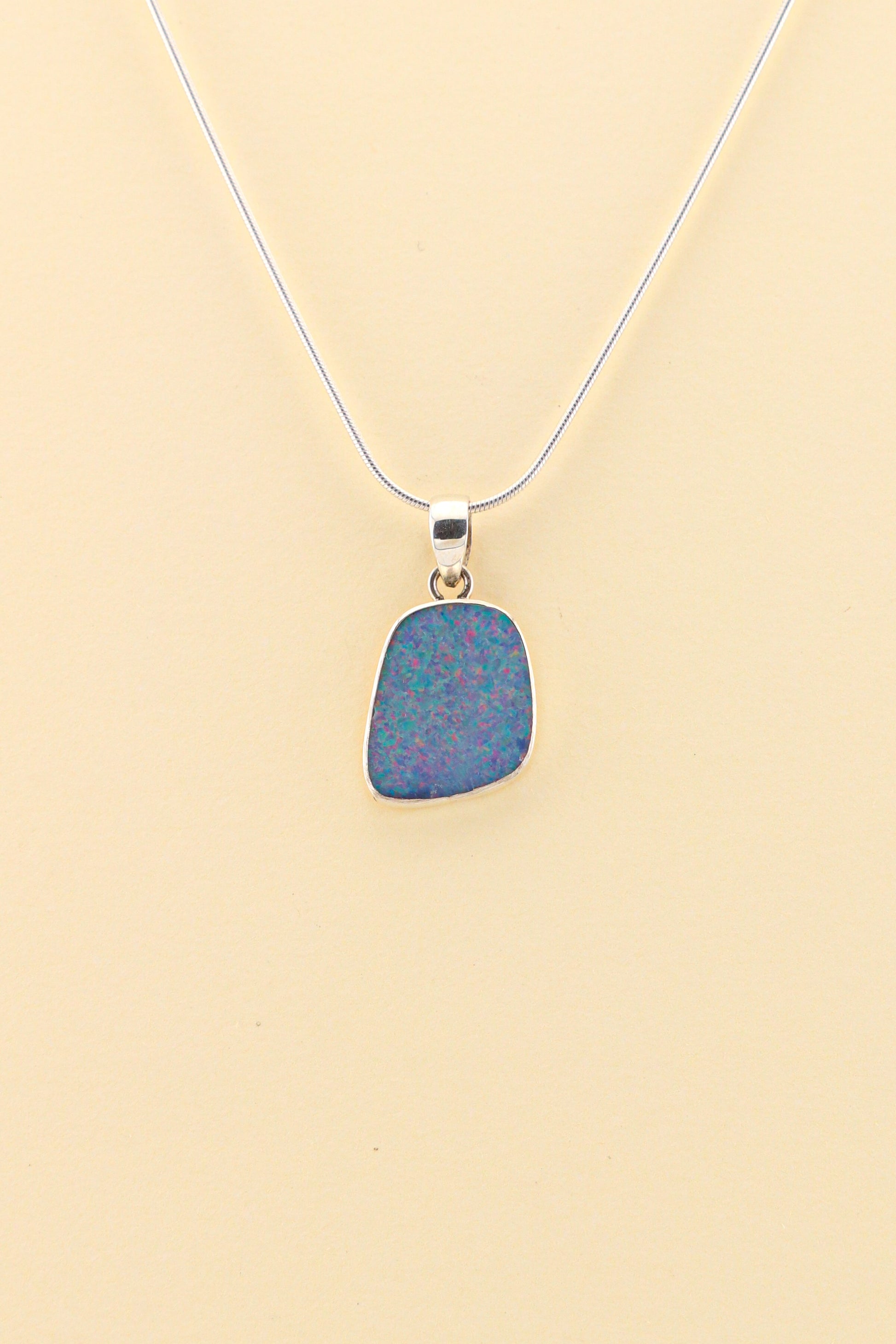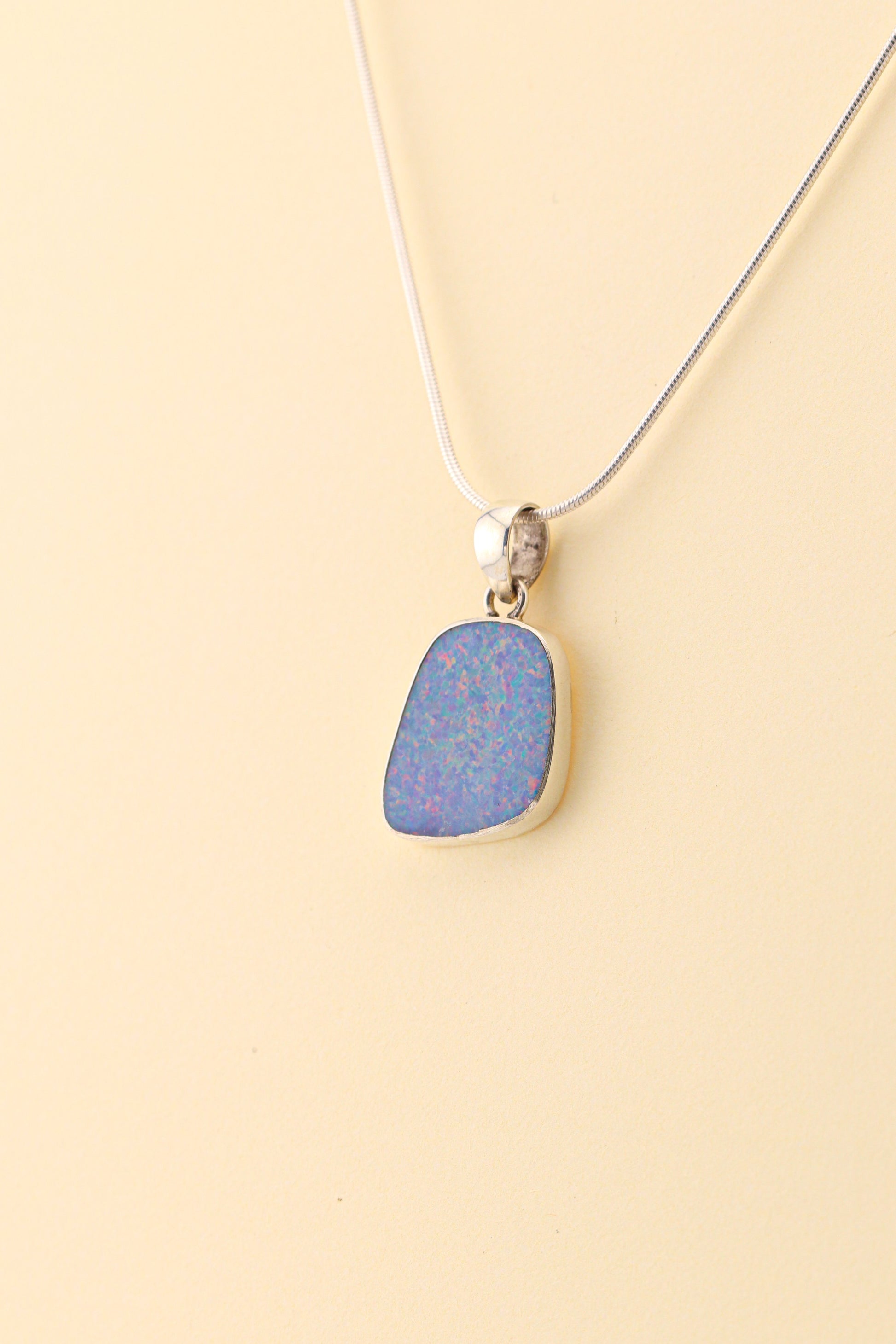 The free form Australian Opal pendant shows stunning pink, orange and green light coming through. The stone is set on a 925 sterling silver bezel.