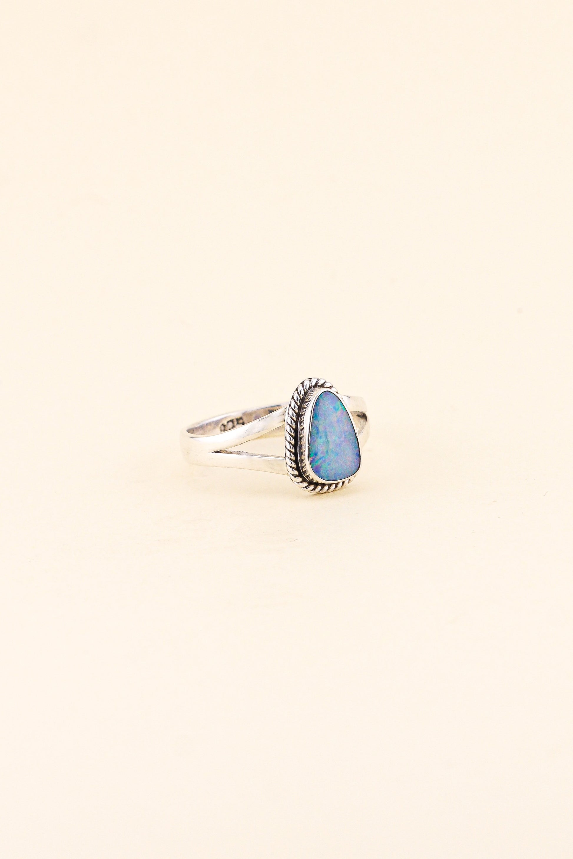 The free form Australian Opal stone shows nice colors coming through. The stone is set on a 925 sterling silver bezel.