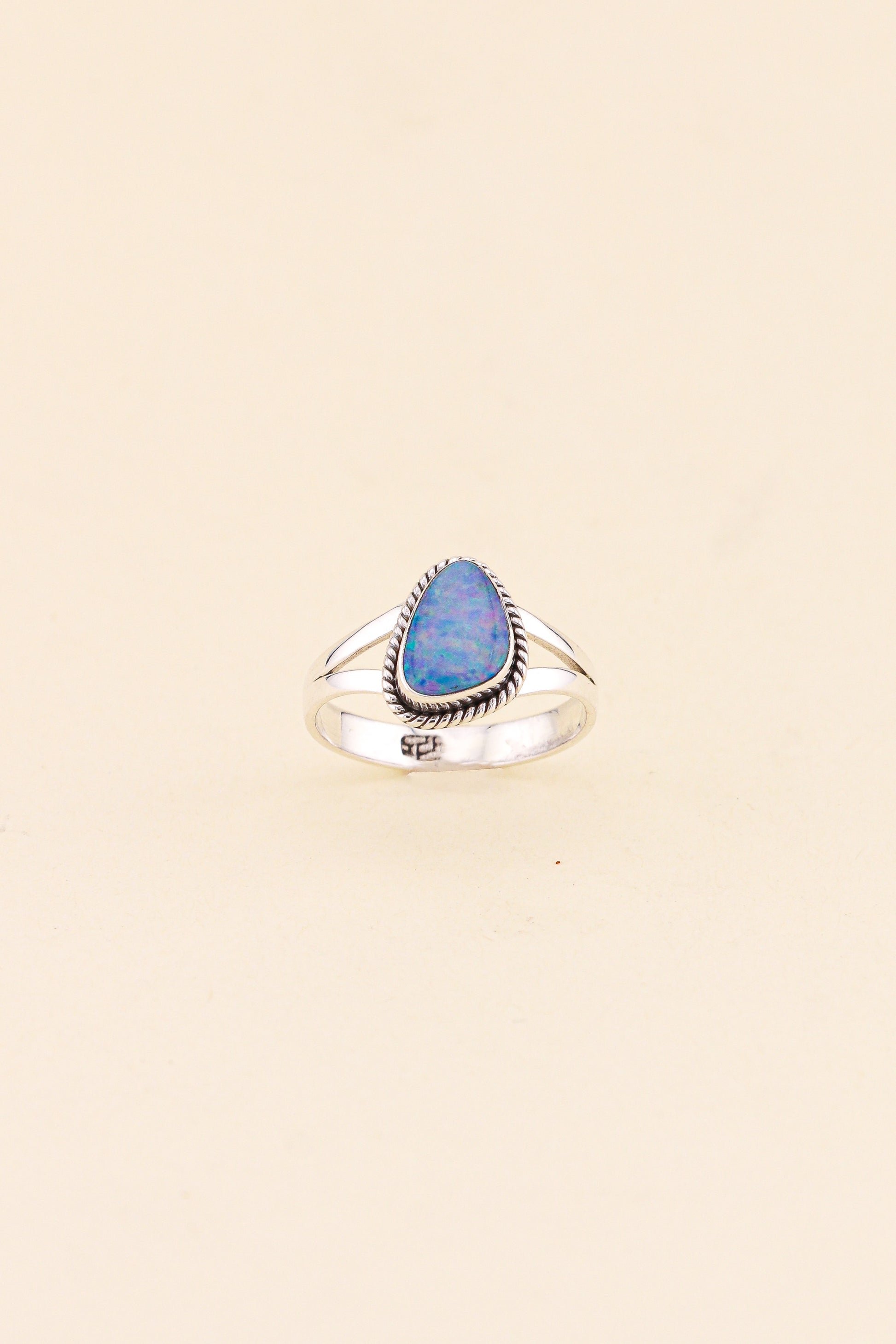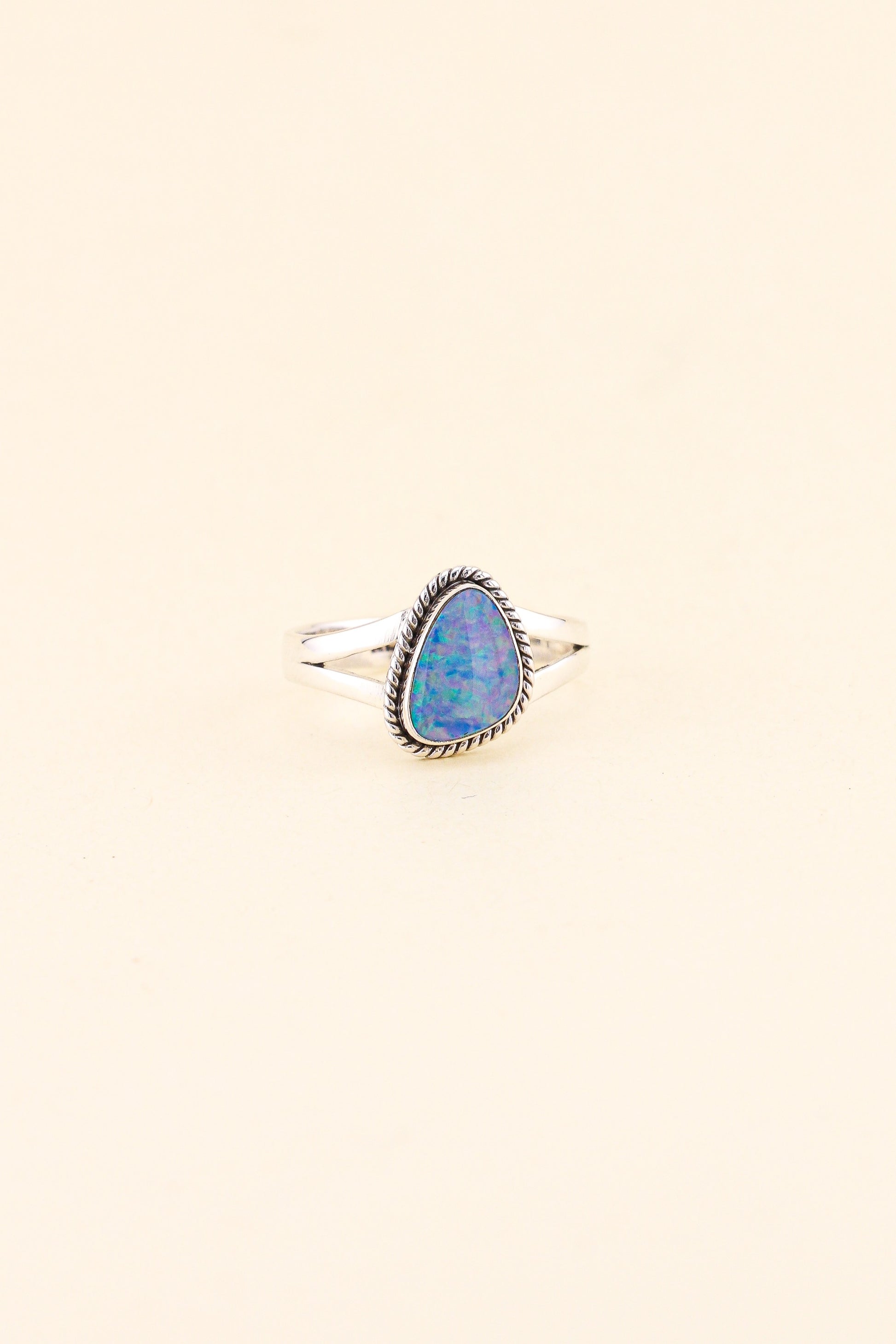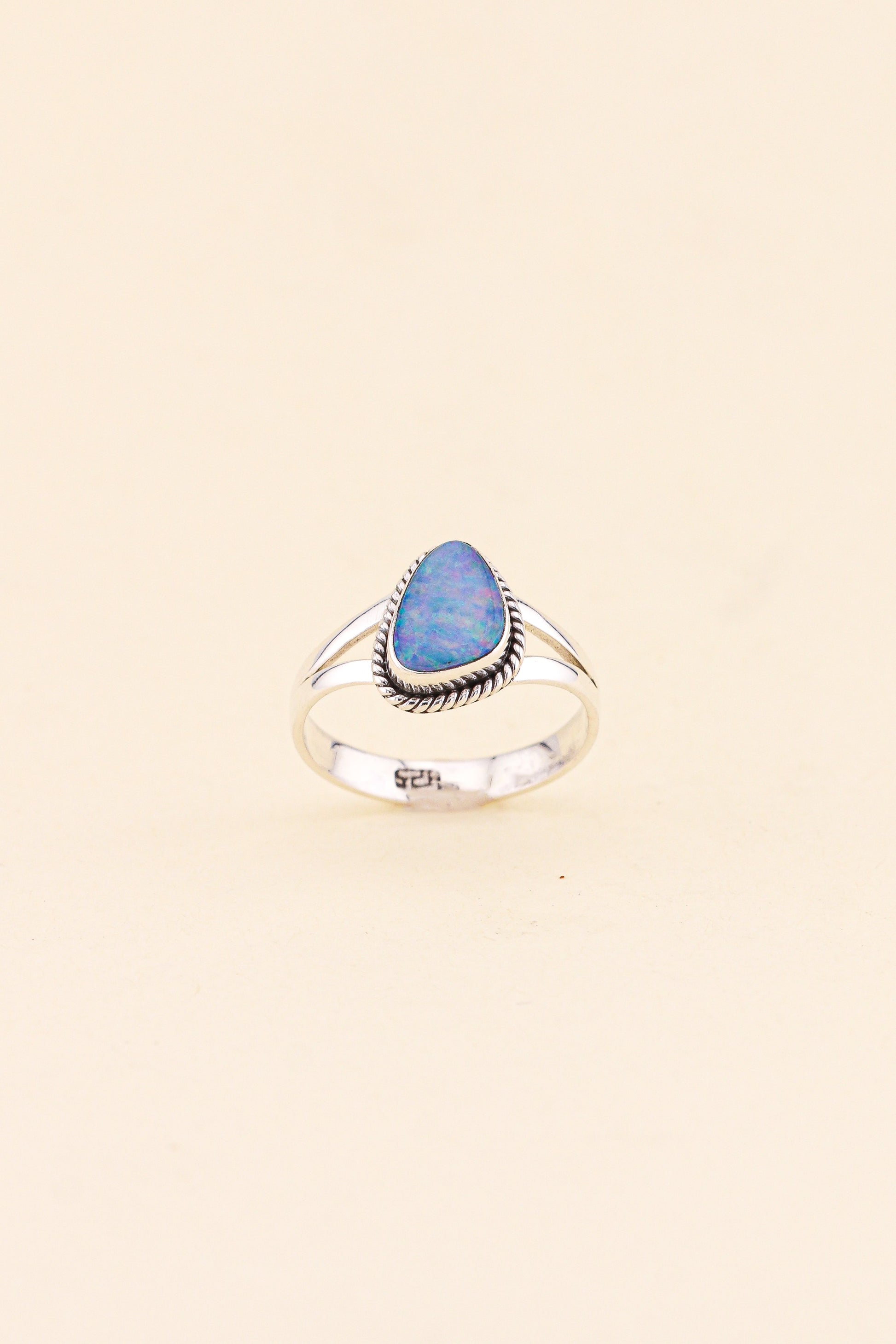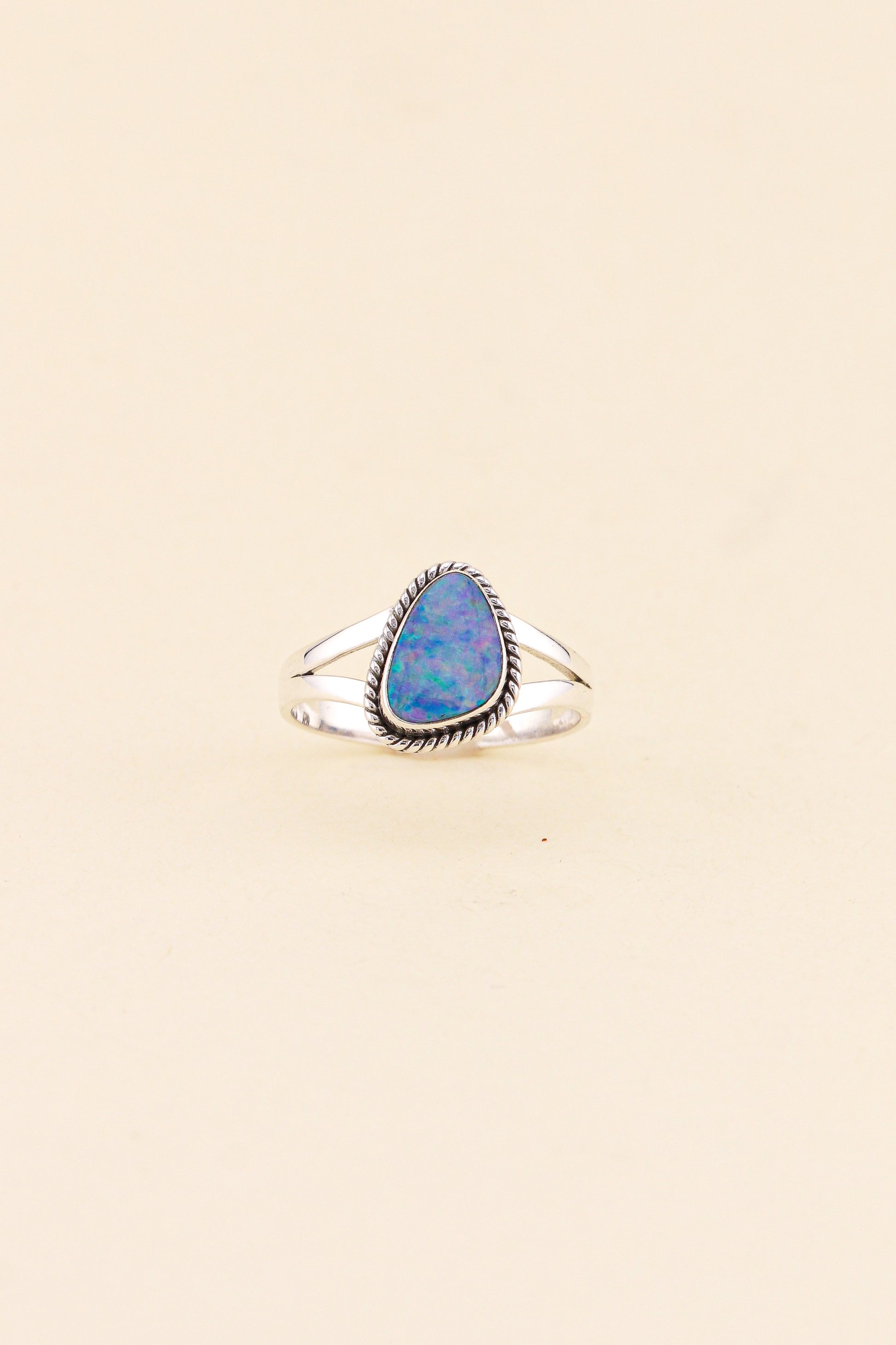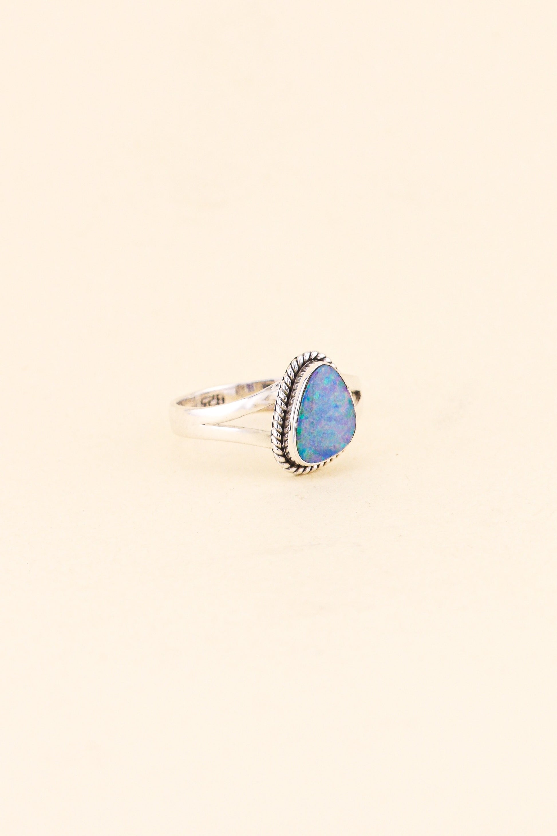The free form Australian Opal stone shows stunning colorful lights coming through that we call "fire". The stone is set on a 925 sterling silver bezel.