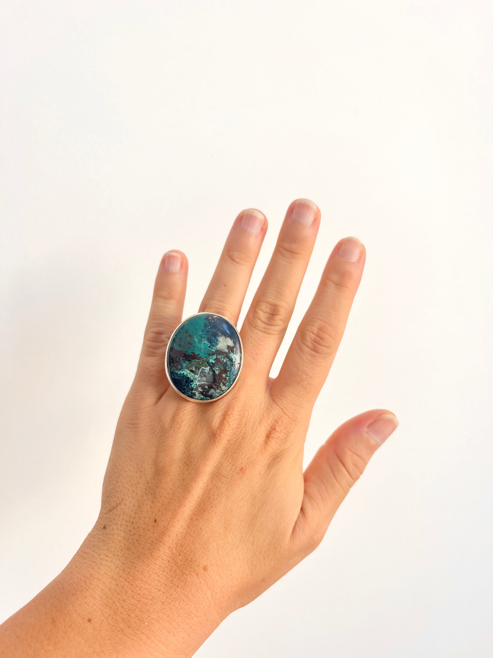 This large Azurite stone makes a one-of-a-kind piece of jewellery. The stone is set with 925 sterling silver.