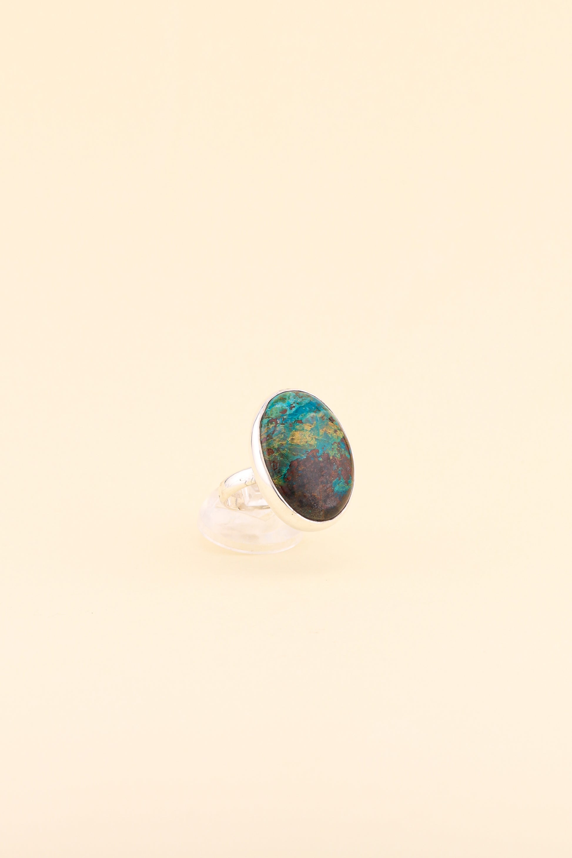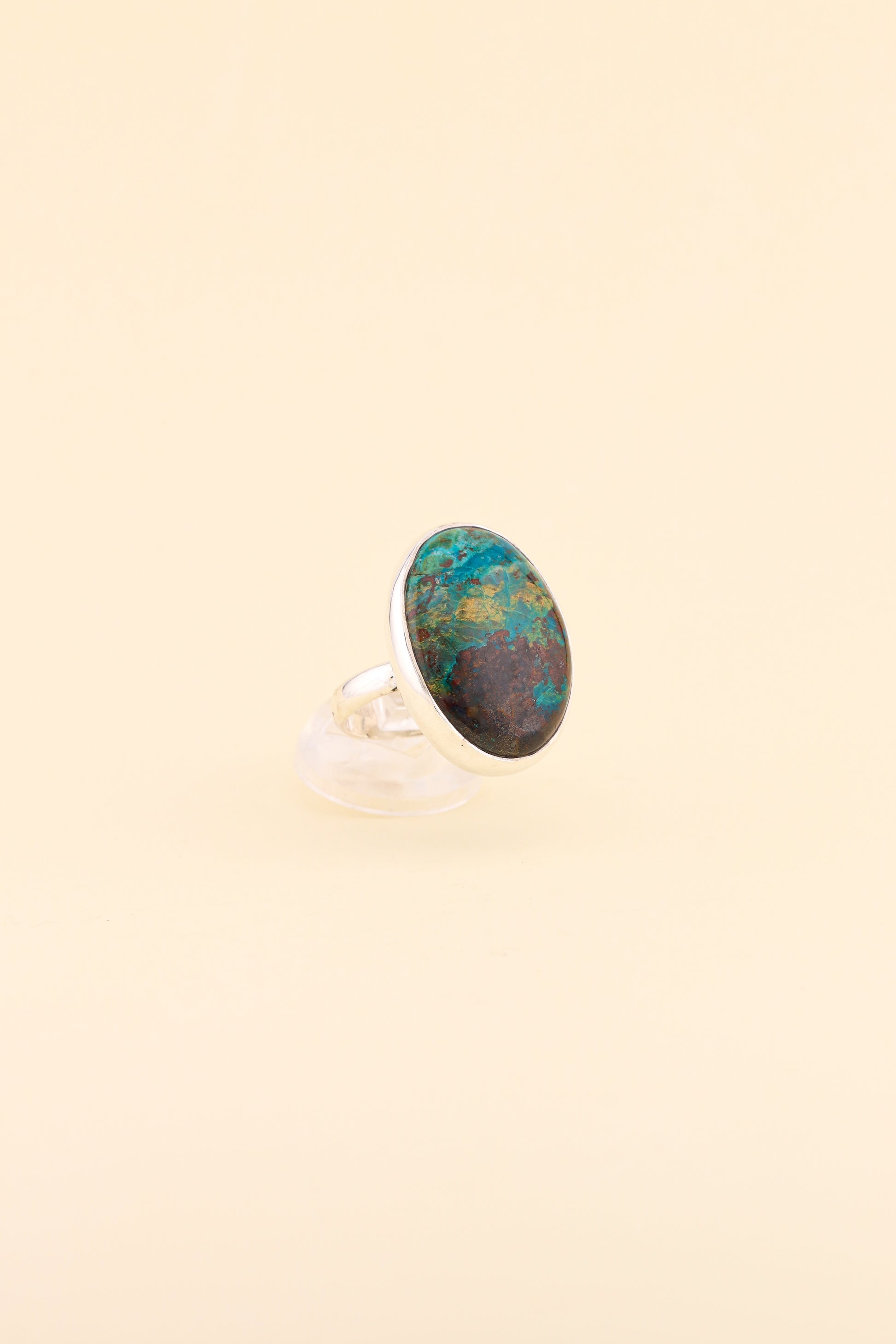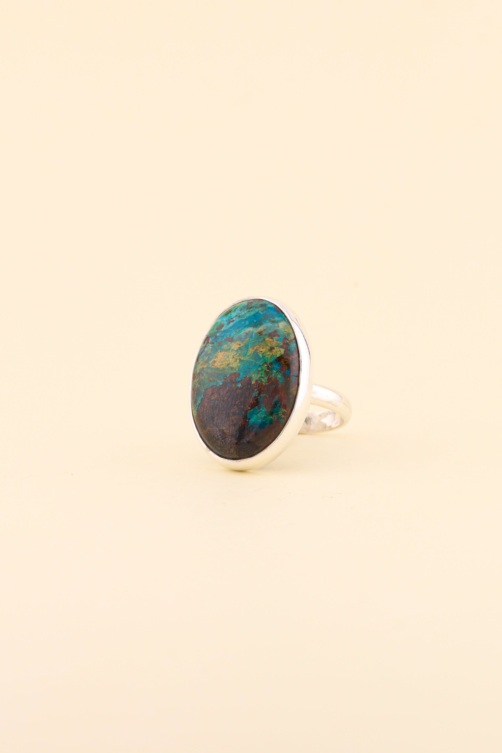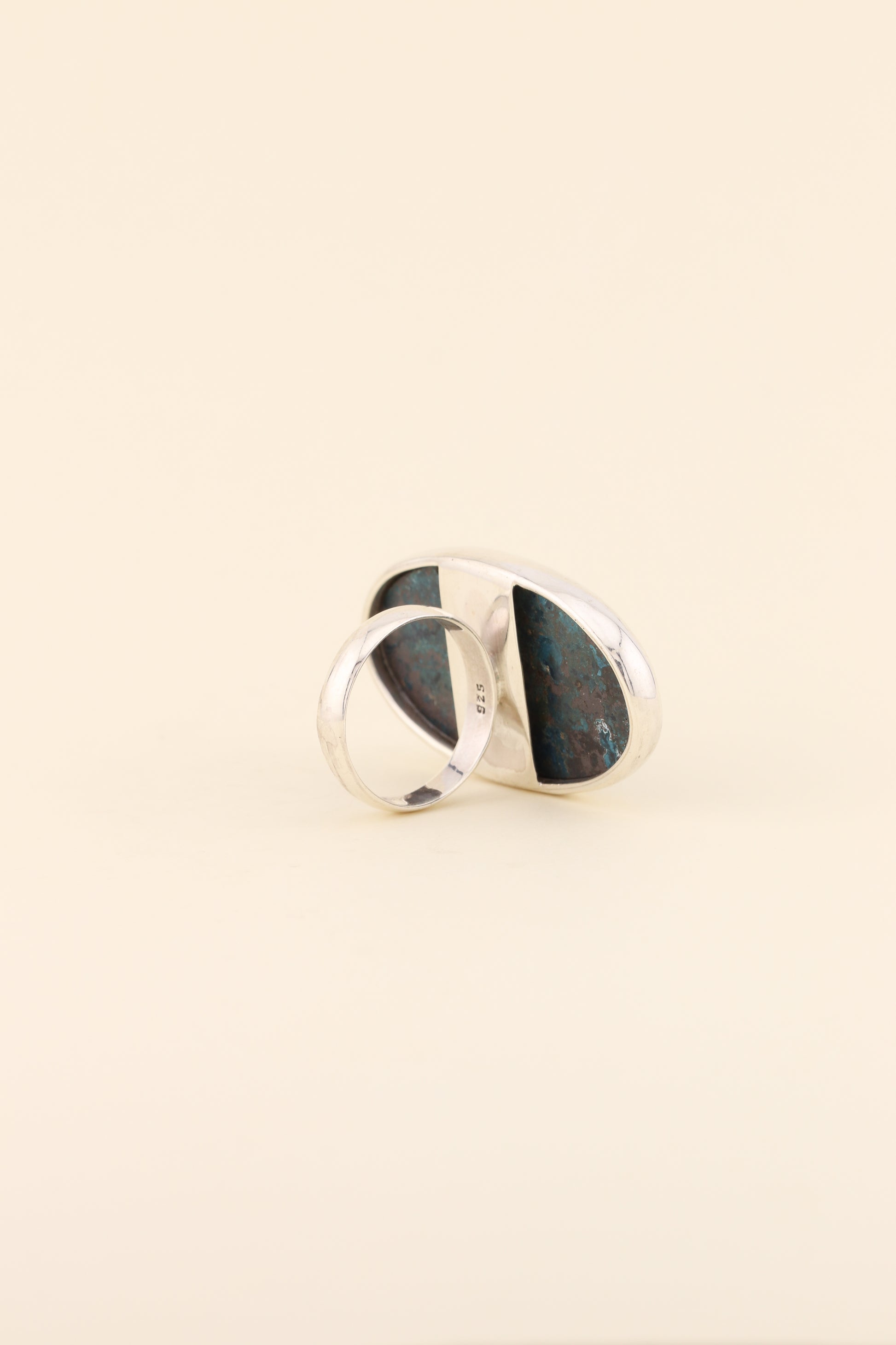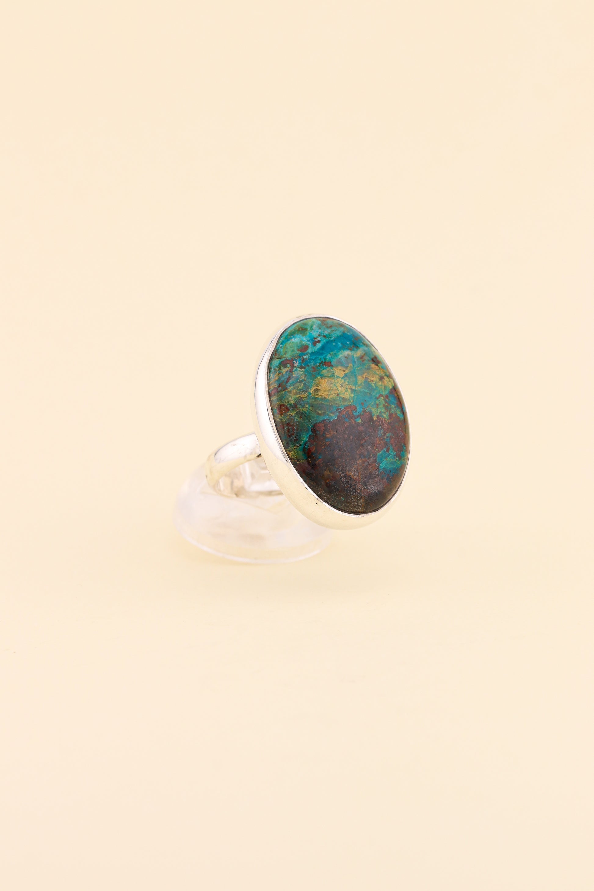 This colorful Azurite stone makes a lovely ring. The stone is set with 925 sterling silver.