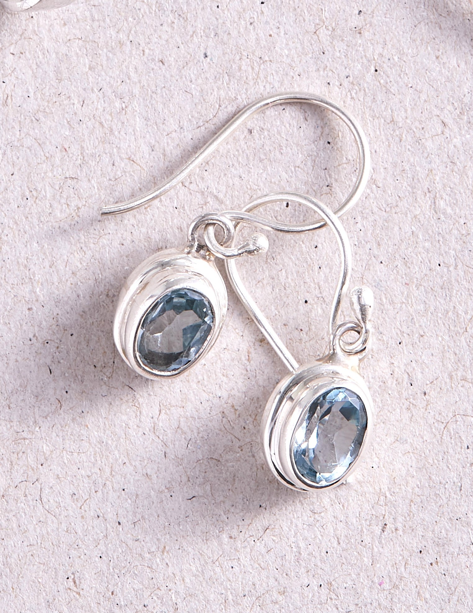These Blue Topaz earrings are great for everyday wear. The stones are set on a 925 sterling silver double bezel.