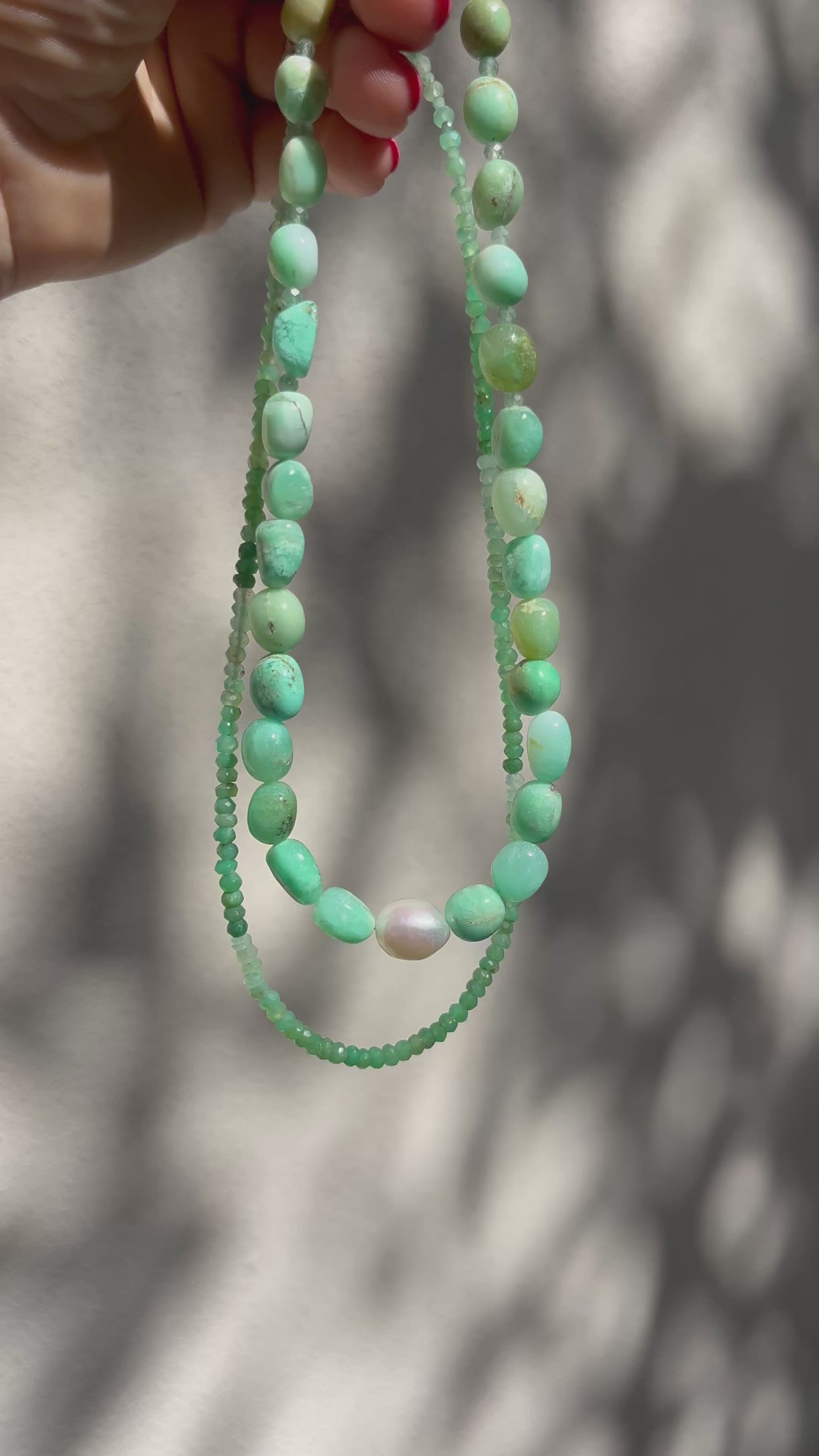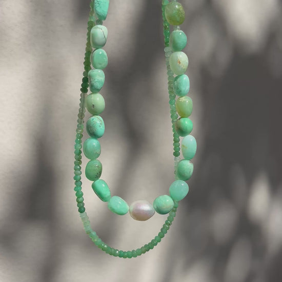 Our Chrysoprase and Freshwater Pearl necklace for some colour in your jewellery collection.