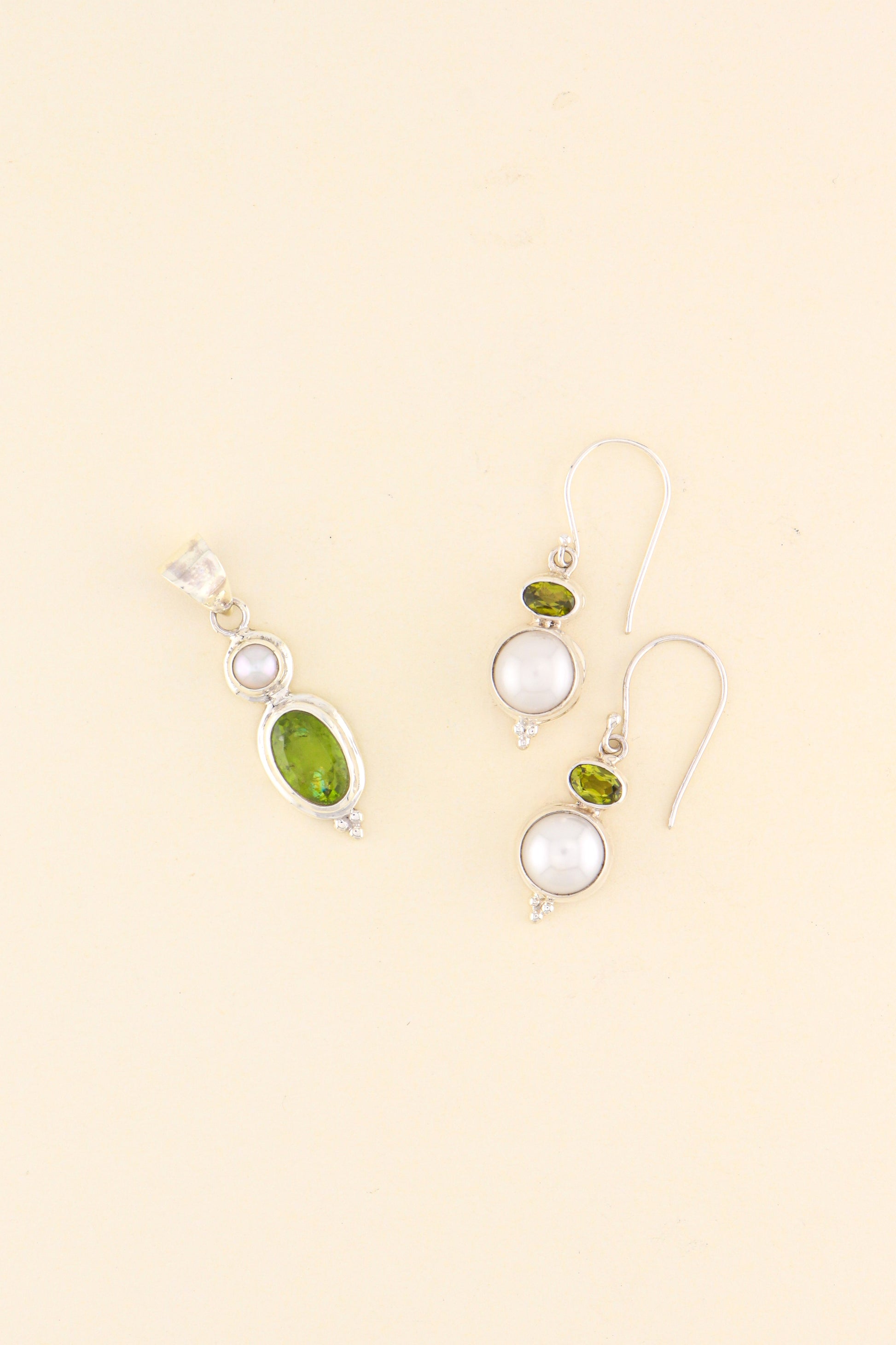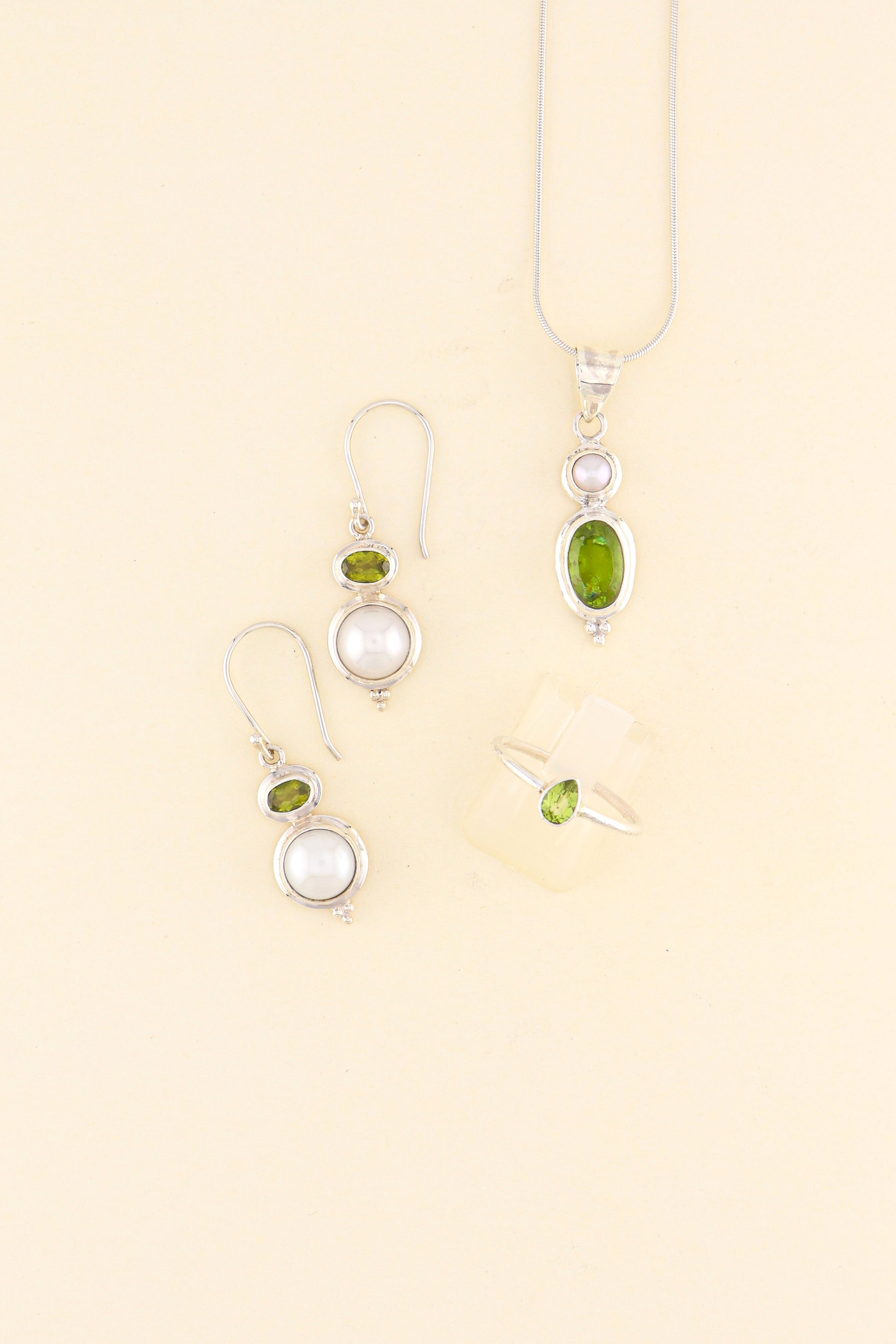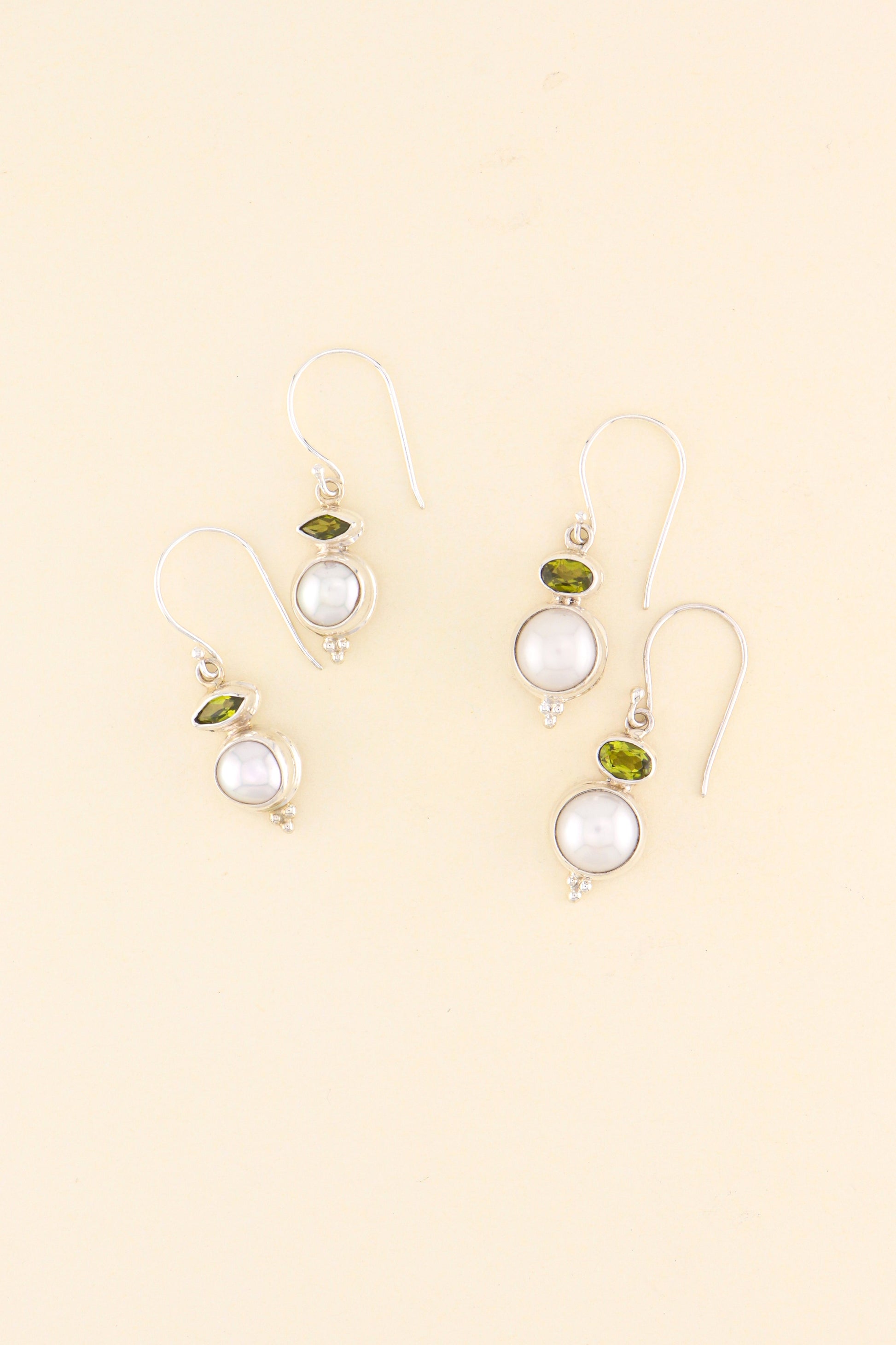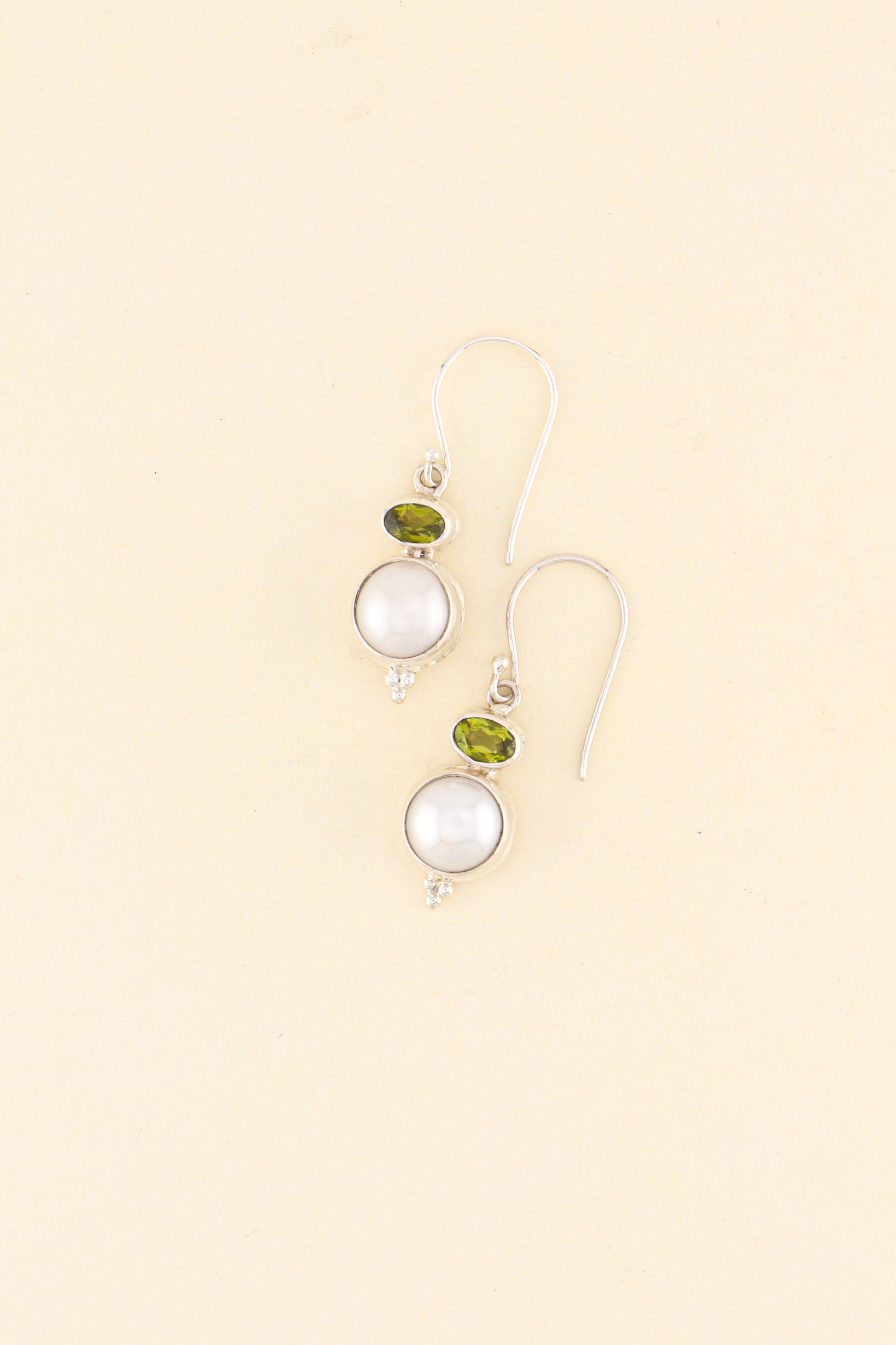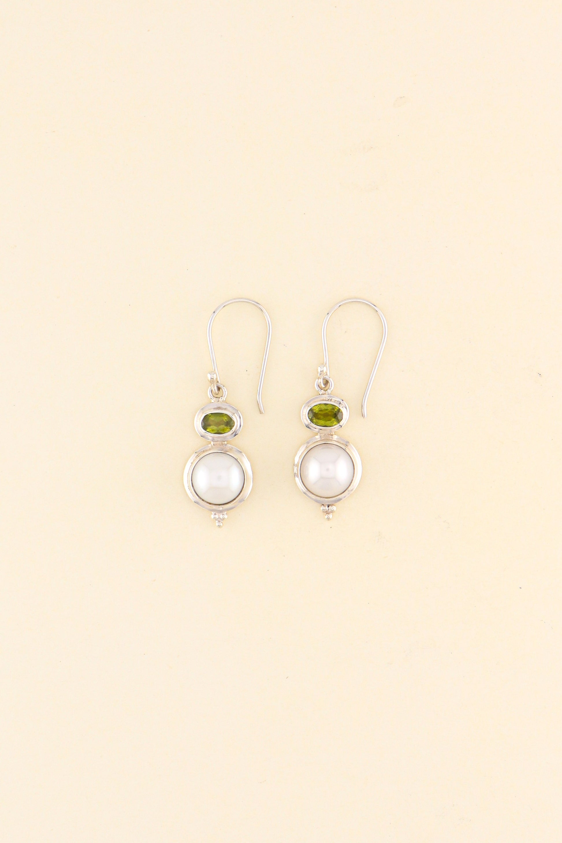 Our Freshwater Pearl and Peridot earrings design is a must have in your jewellery collection. The stones are set on a 925 sterling silver double bezel.