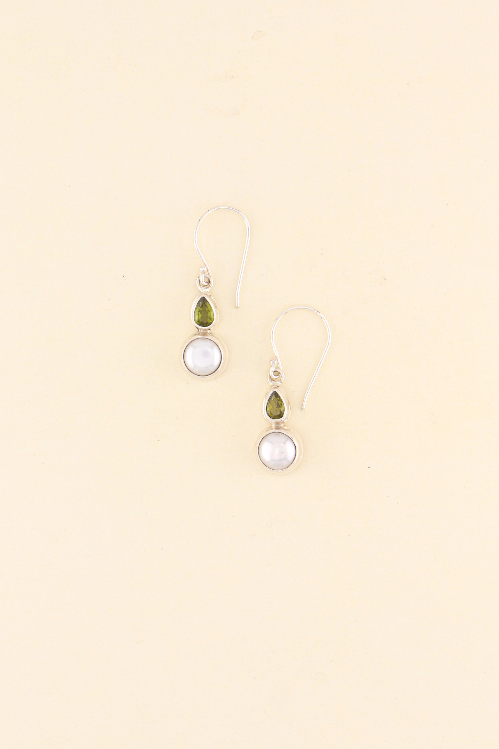Freshwater Pearl and Peridot Earrings | PERIE21