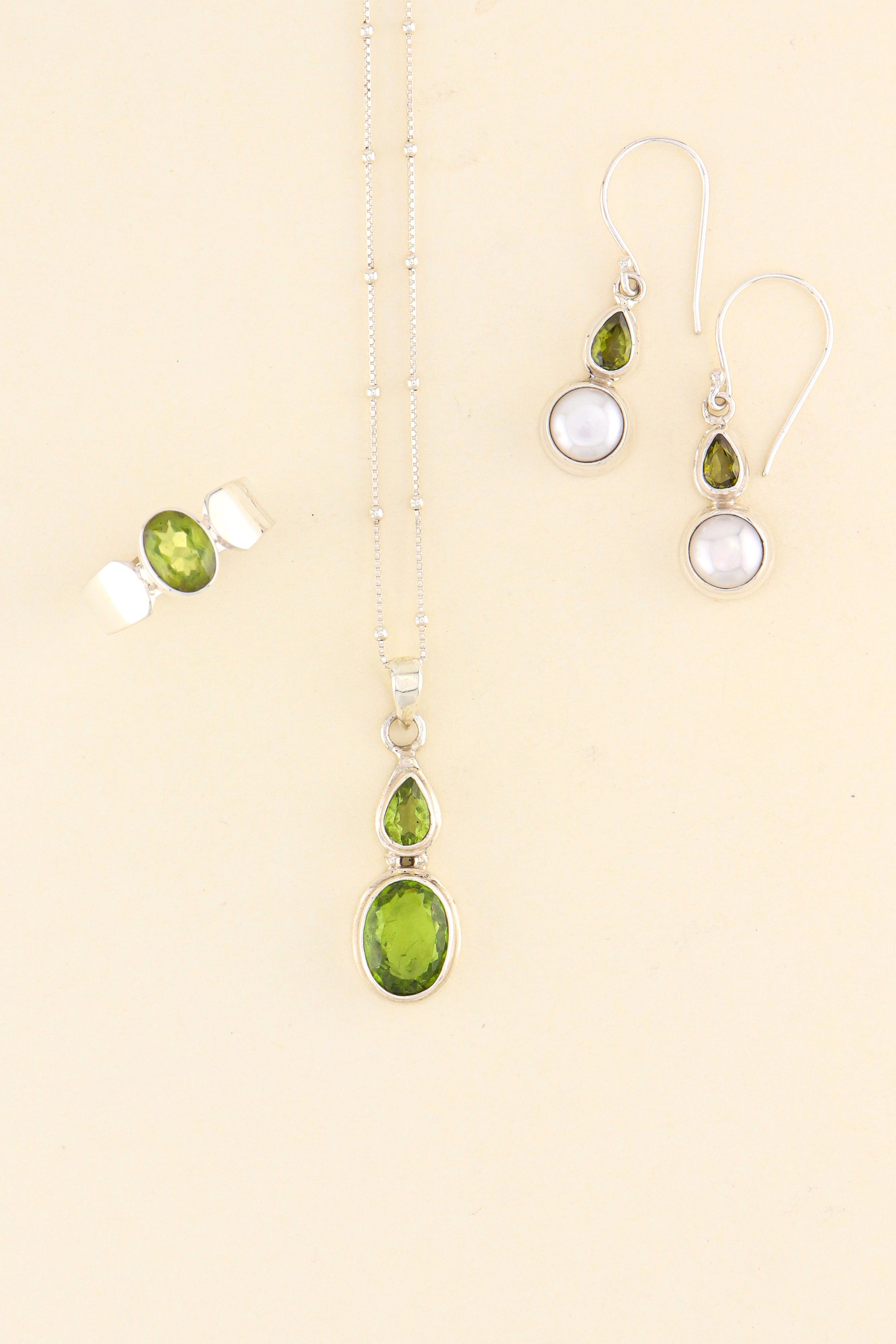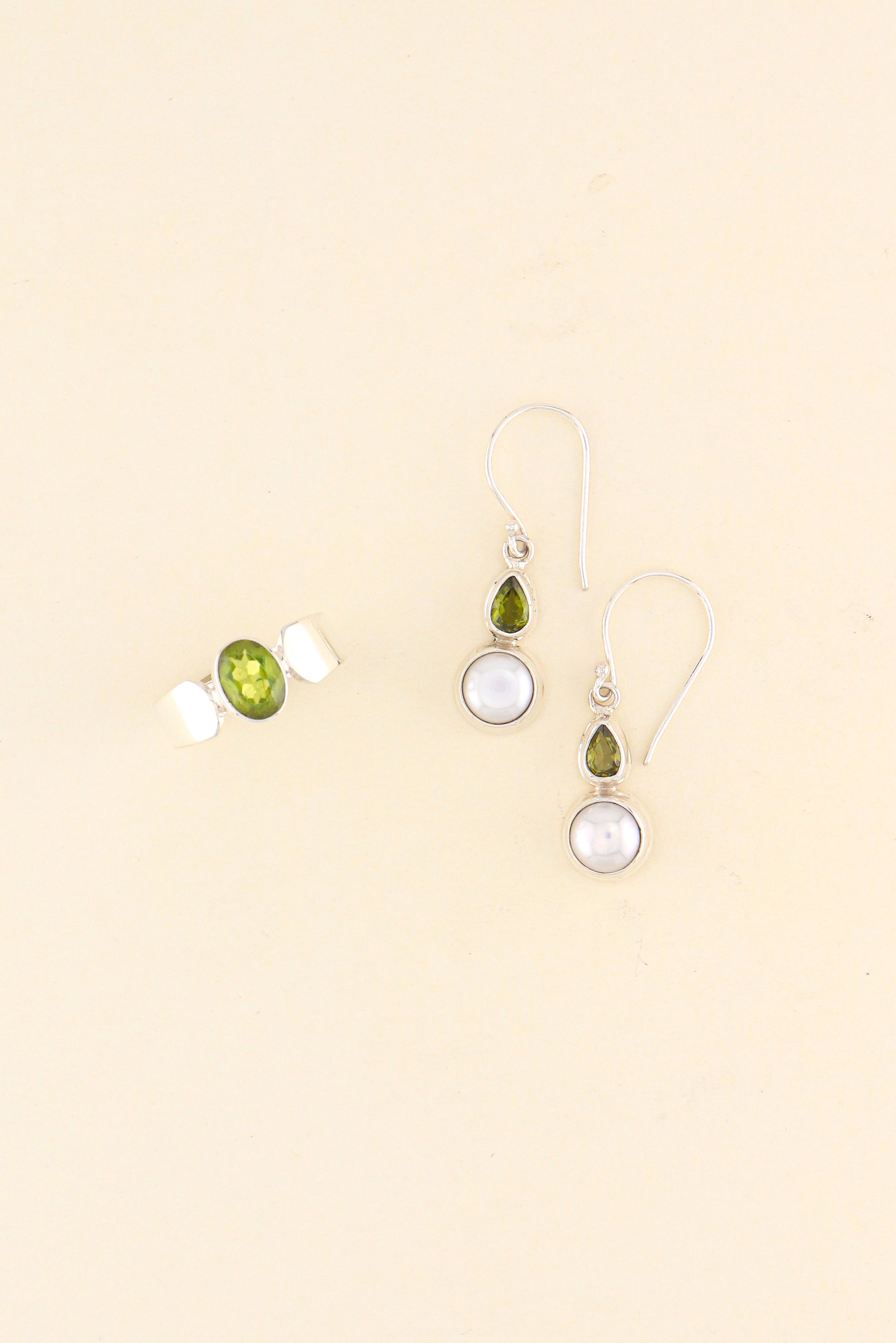 Our Freshwater Pearl and Peridot earrings design is a must have in your jewellery collection. The stones are set on a 925 sterling silver double bezel.