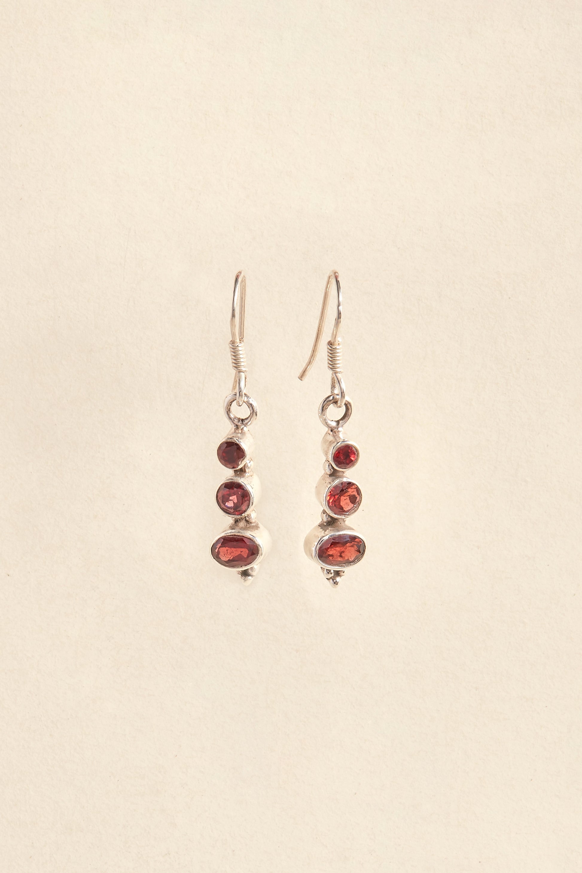 These triple faceted Garnet earrings are an elegant pair of earrings to add to your jewellery collection. The stones are set on a 925 sterling silver double bezel.