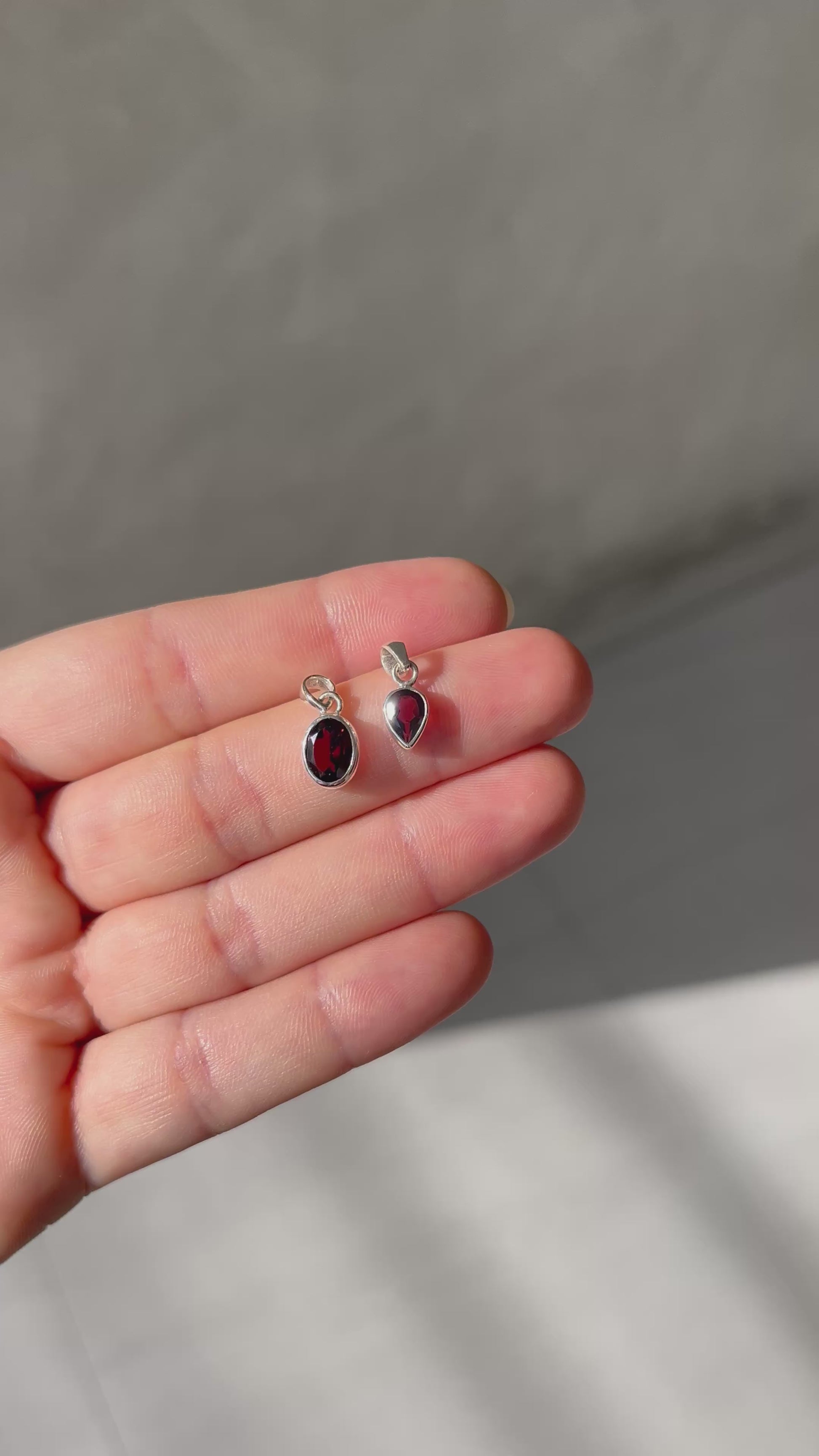Our mini Garnet pendant is a go-to piece of jewellery to wear everyday. The stone is set on a 925 sterling silver double bezel.
