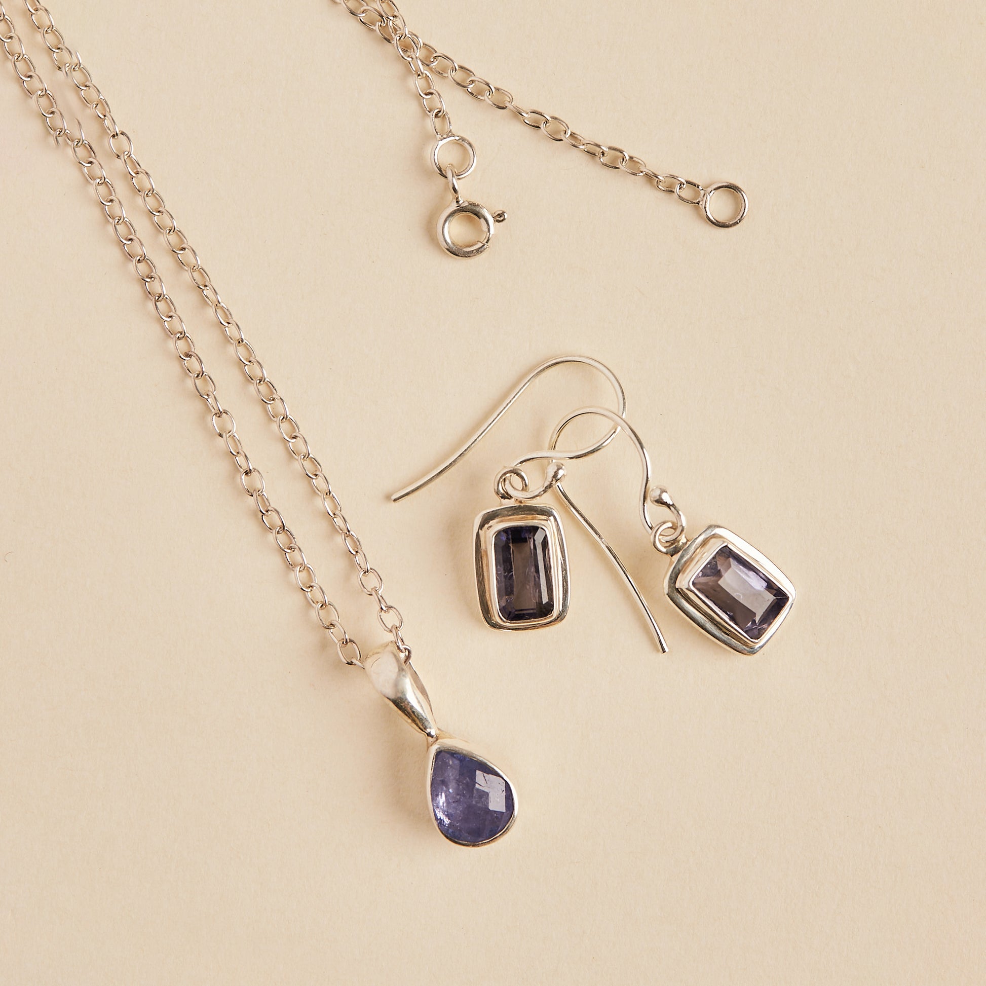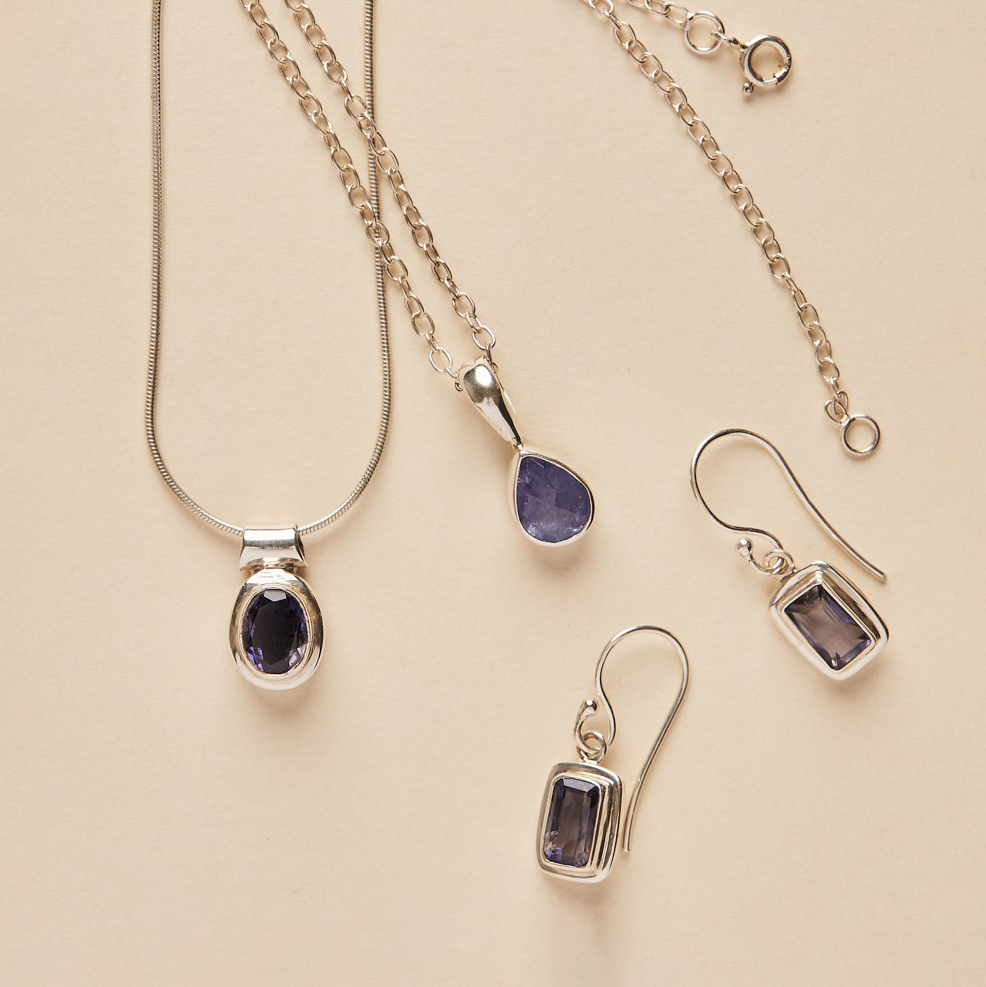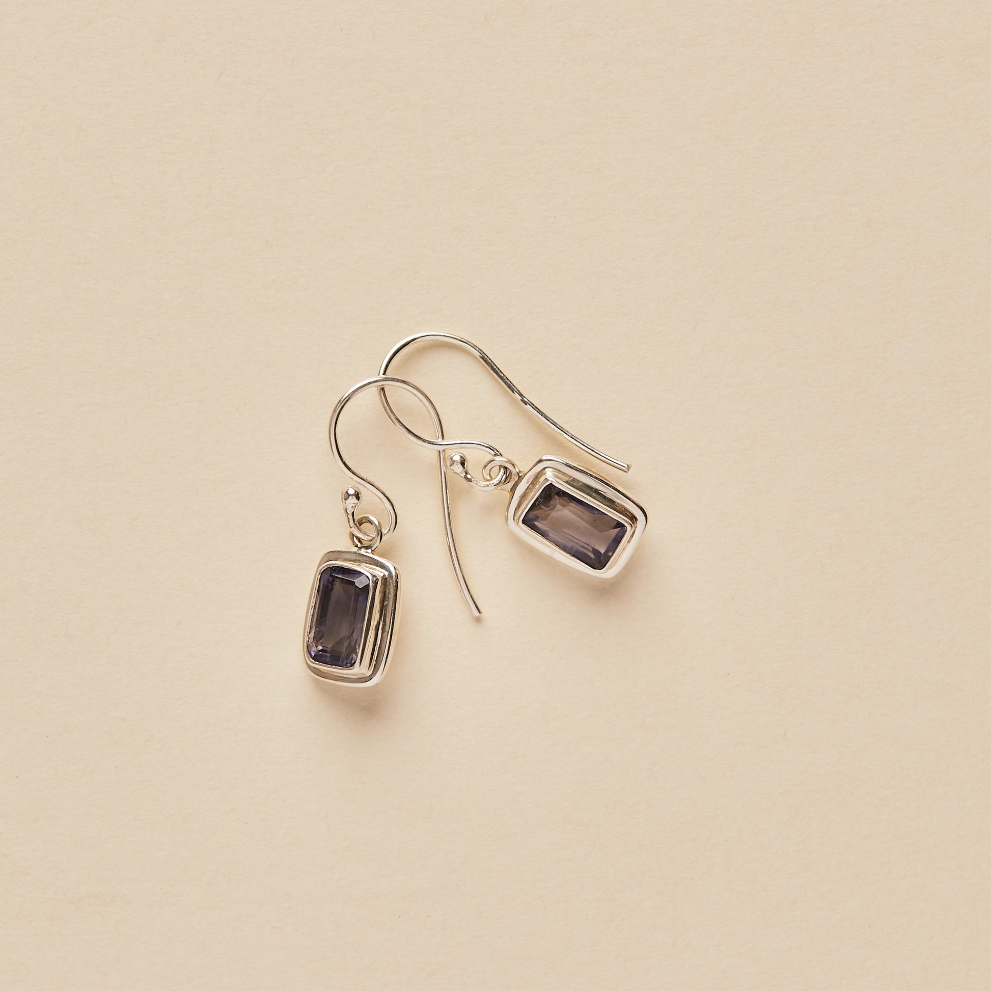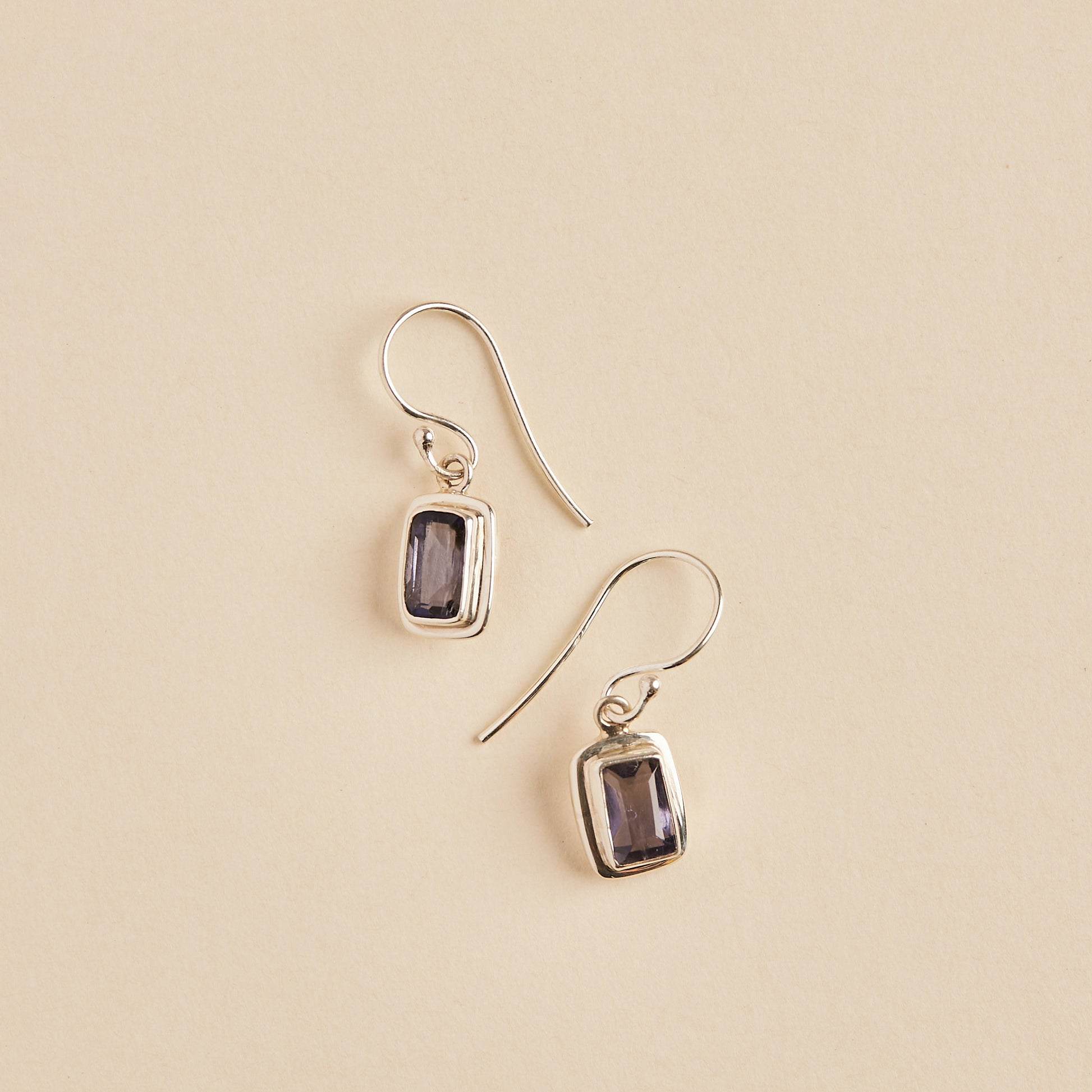 These lovely Iolite stones make an elegant pair of earrings for everyday wear. They are set on a double bezel, made with 925 sterling silver.