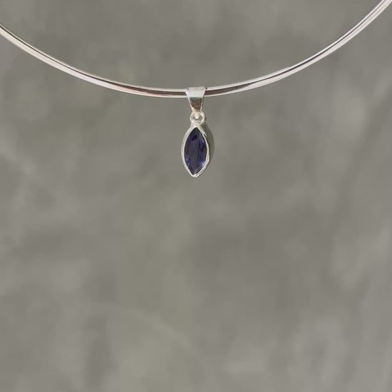 Our Iolite Marquise pendant, made with 925 sterling silver.