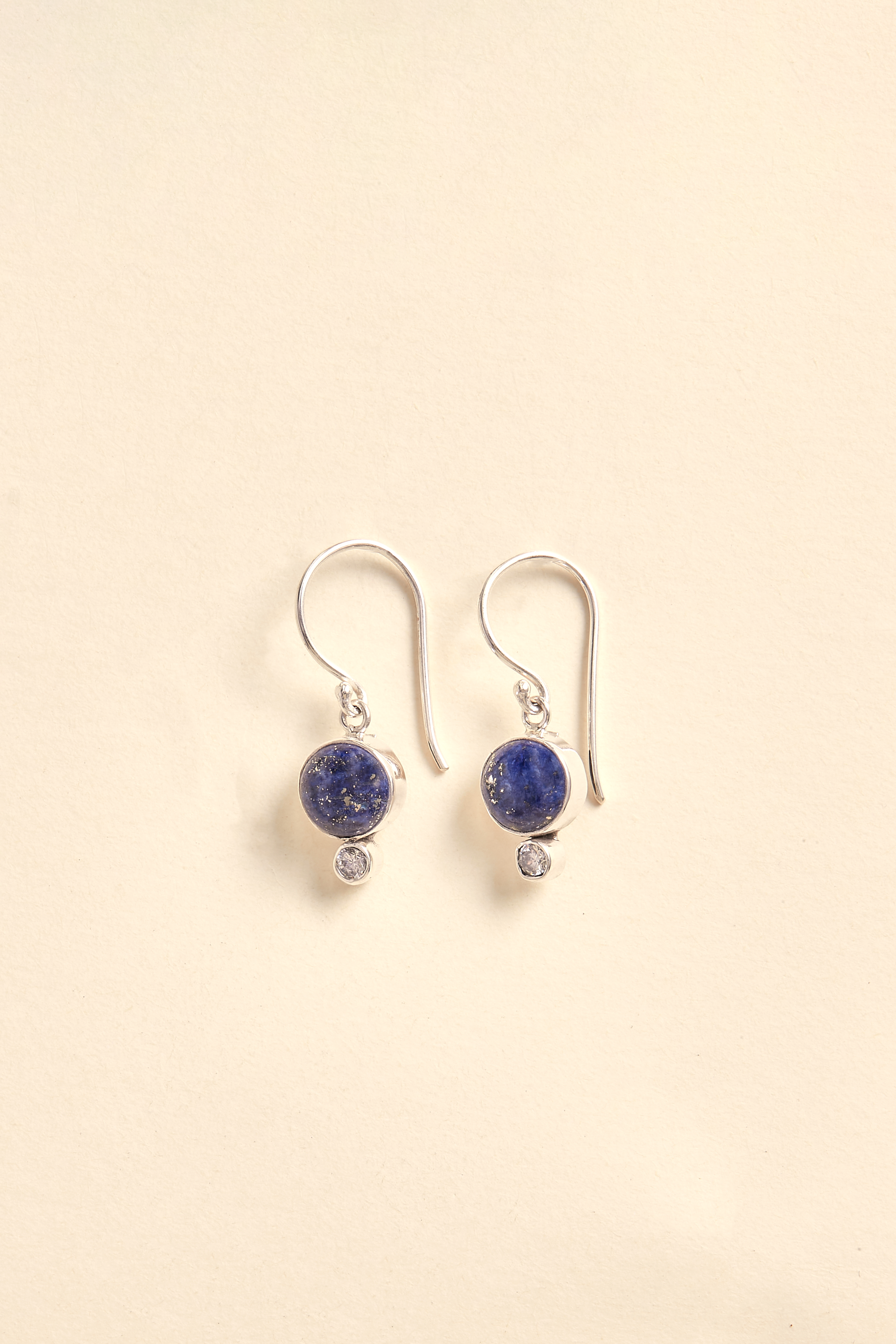 These Lapis Lazuli and Zircon earrings are the cutest everyday wear pair of earrings. The stones are set with 925 sterling silver.