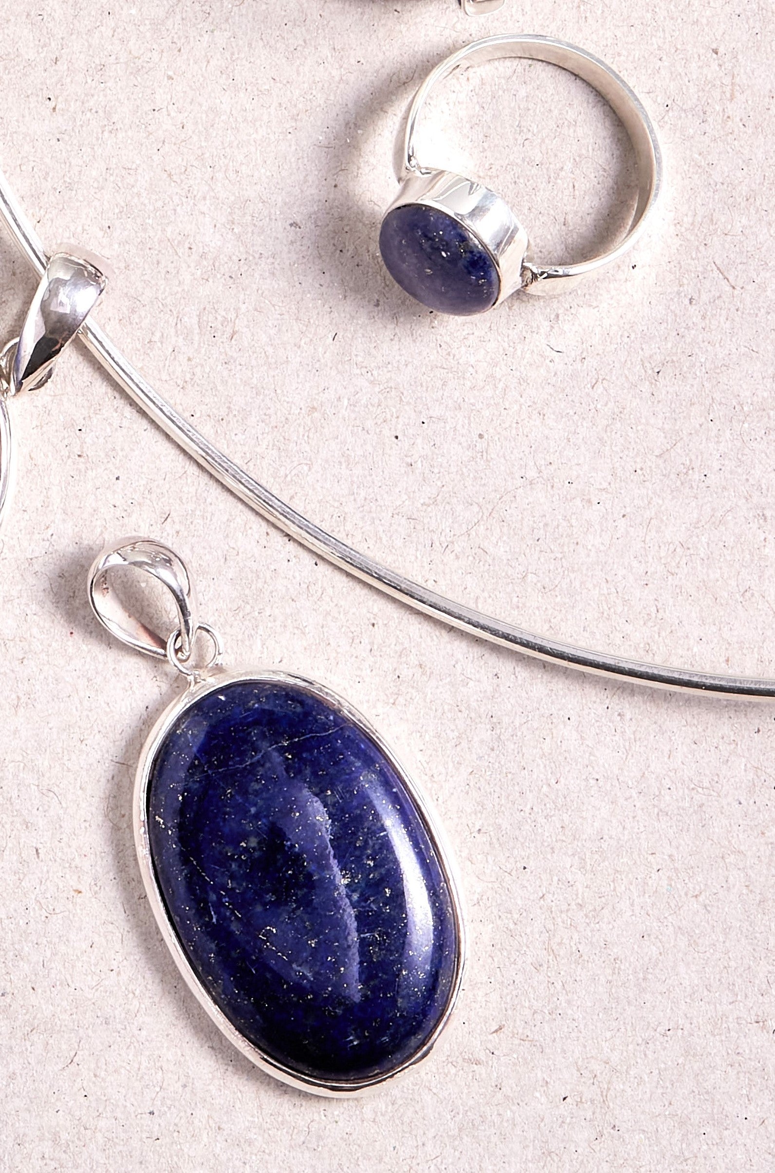 This Lapis Lazuli stone shows a nice deep blue color, freckled with Pyrite. It makes a lovely piece of jewellery to add to your collection. The stone is set on a 925 sterling silver dome bezel.