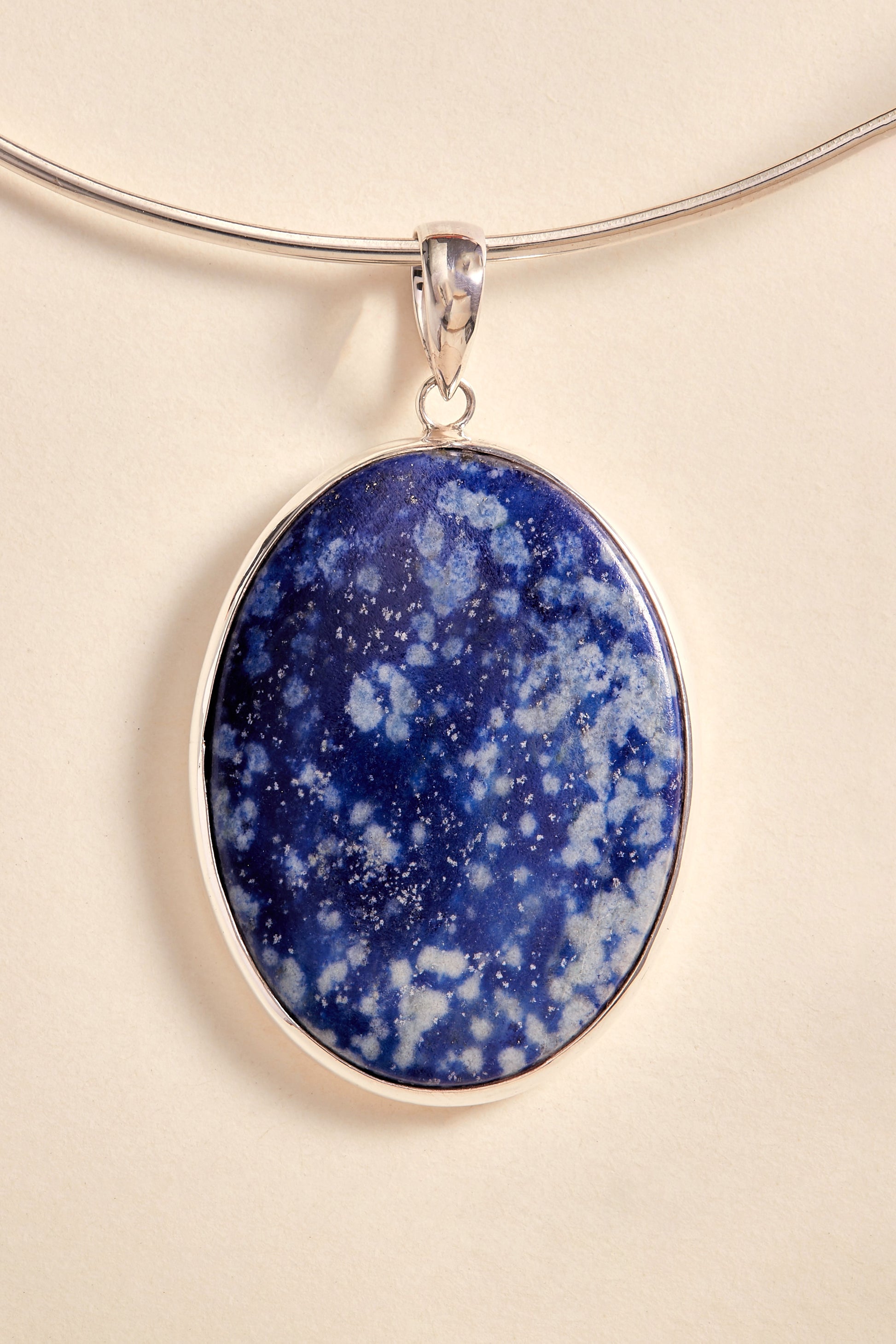 The unique pattern of that Lapis Lazuli stone makes a lovely pendant to add to your jewellery collection. The stone is set using 925 sterling silver.