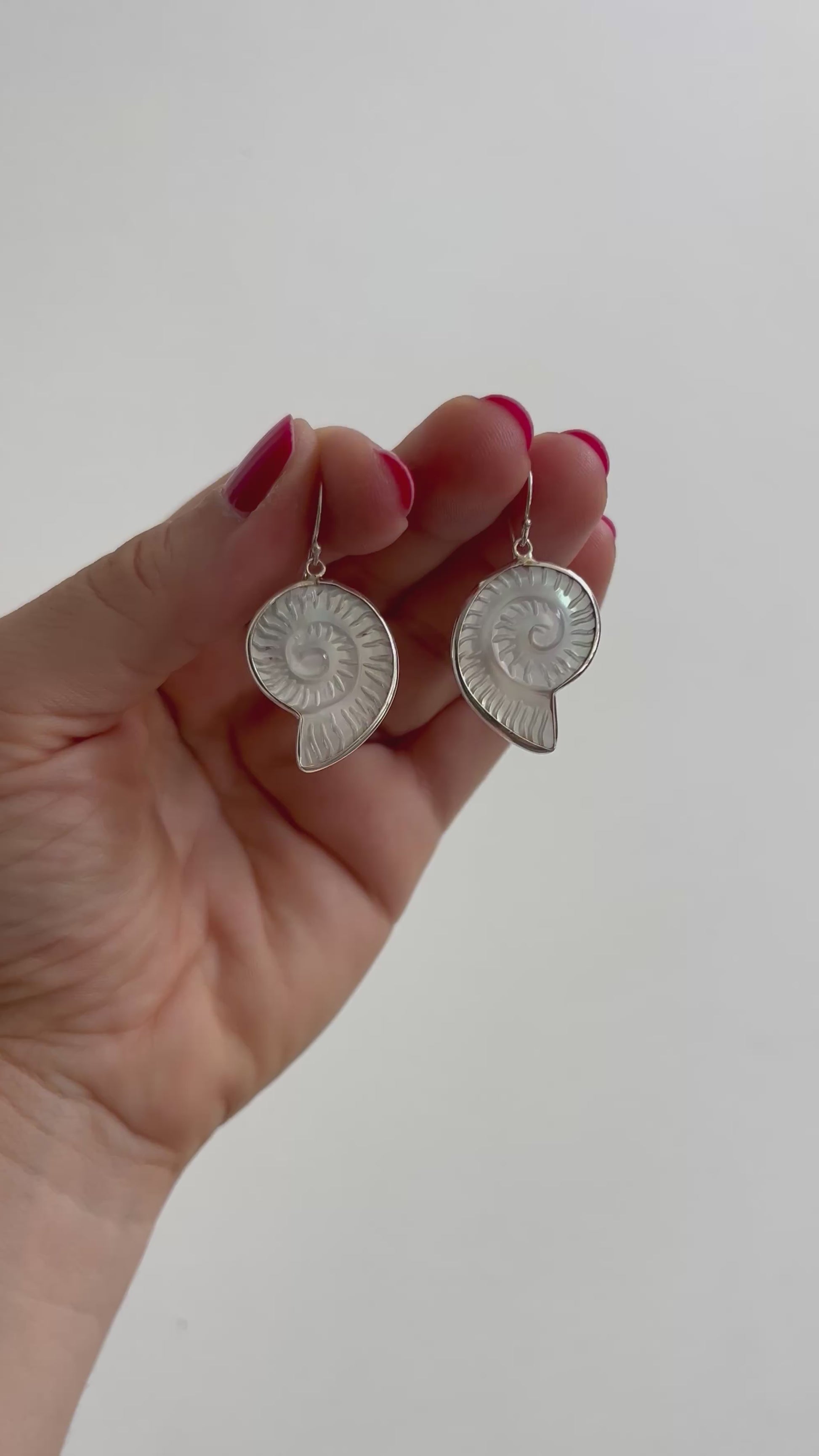 Shell carved earrings for an ocean inspired look.