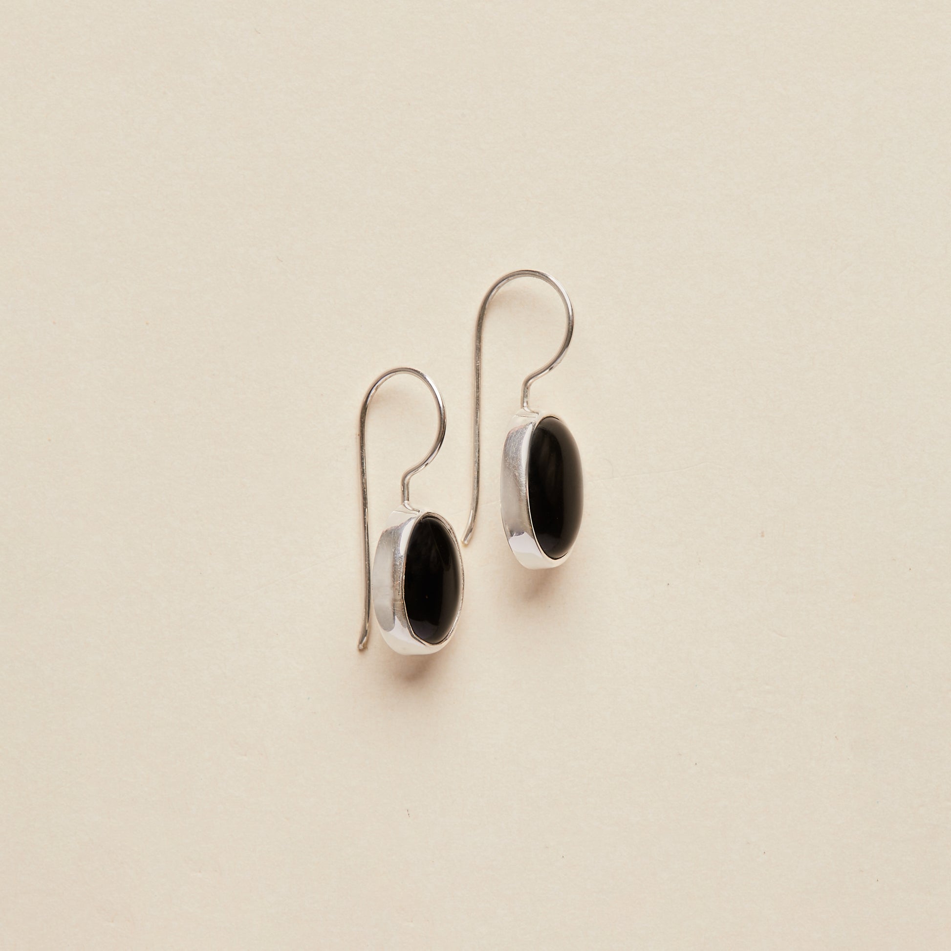 These elegant Onyx earrings are the perfect black earrings. They are beautifully set on a 925 sterling silver bezel with fixed hoops.