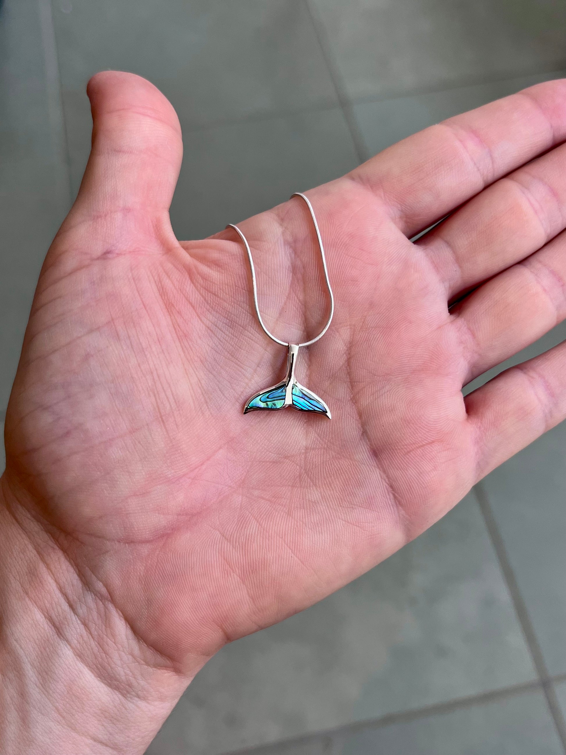Our whale tail pendant in Paua shell is the ultimate ocean style piece of jewellery. Made with 925 sterling silver and natural shell.
