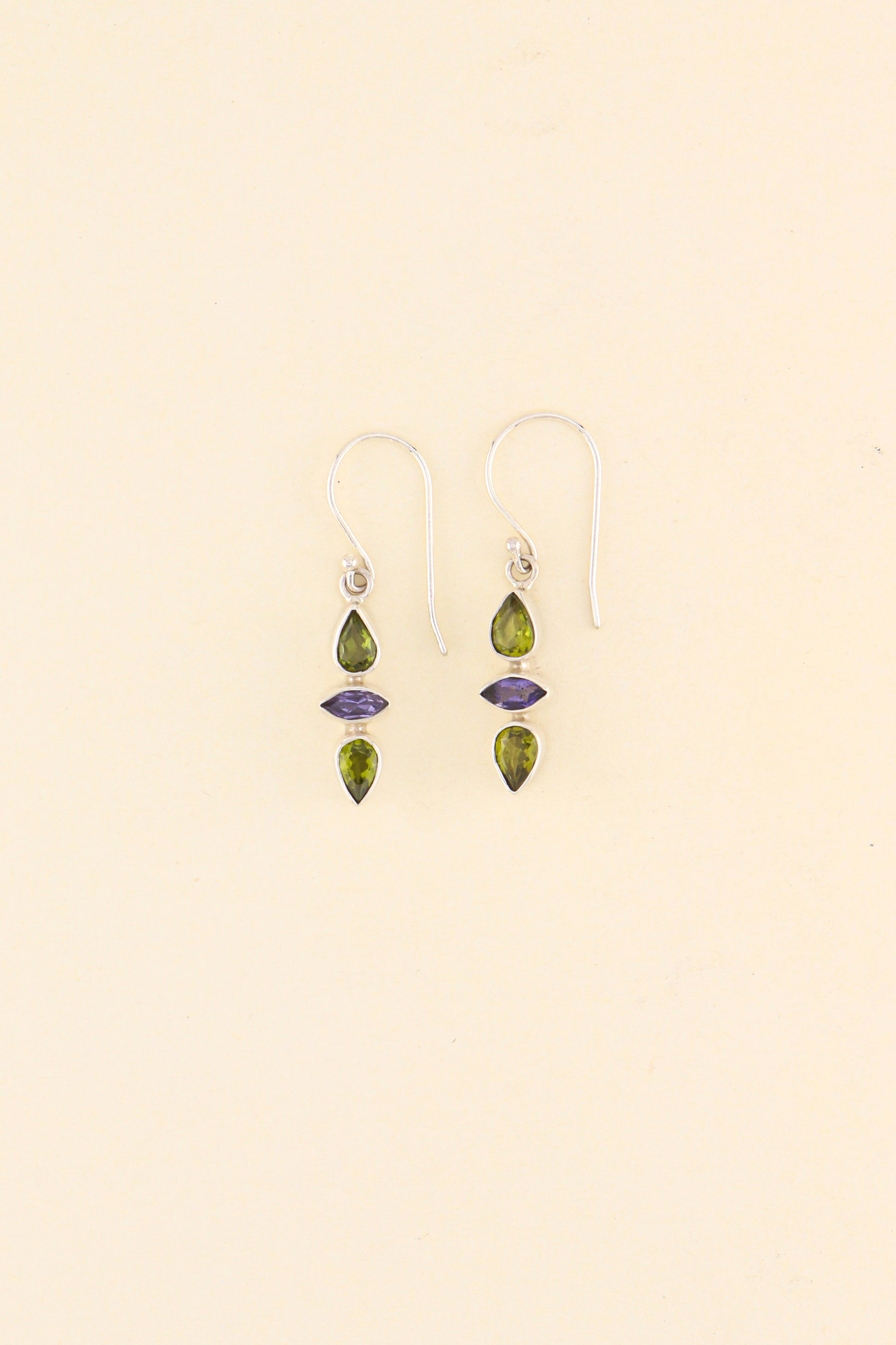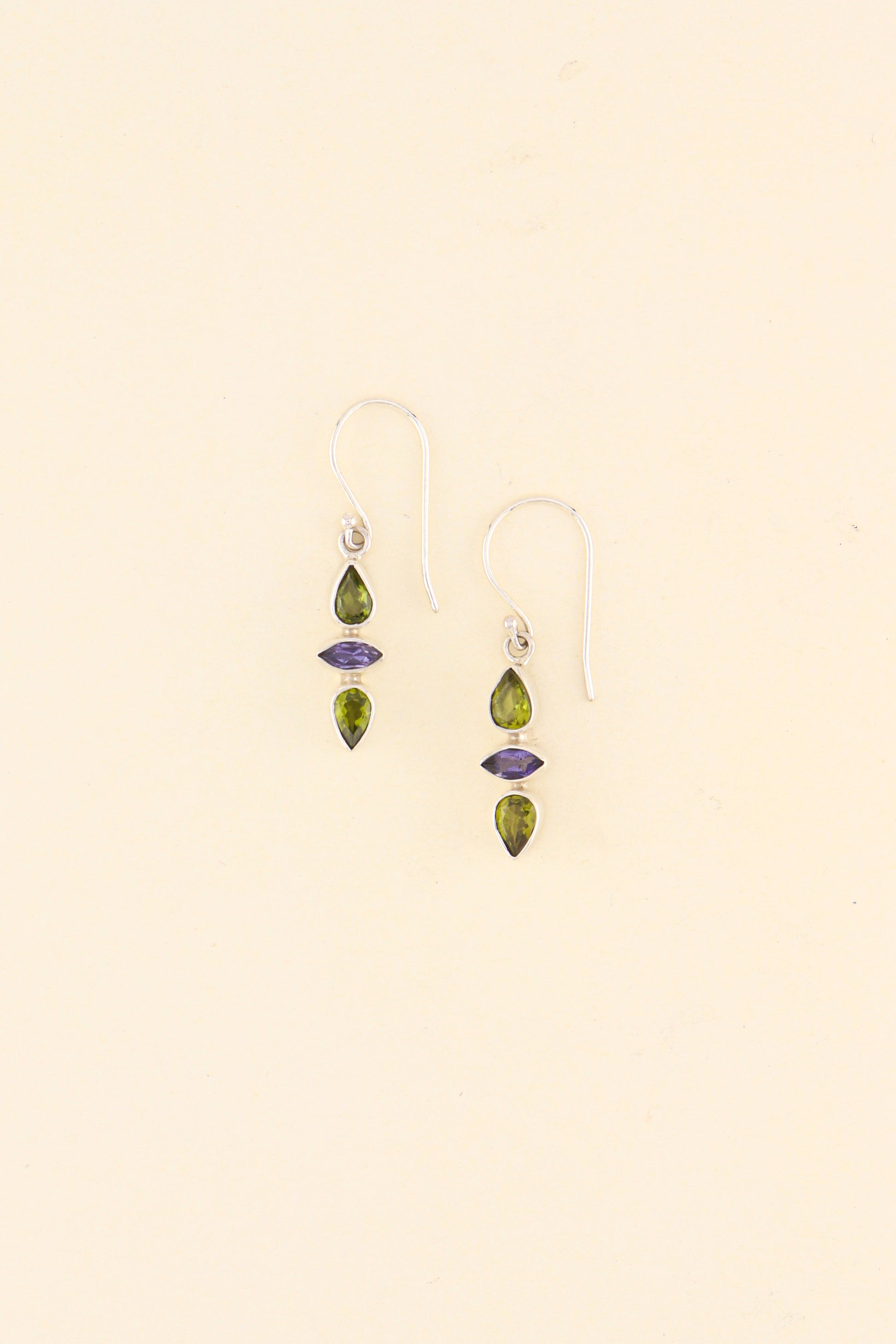 Our multi stone design pair of earrings in Peridot and Iolite is an elegant piece of jewellery to add to your collection. The stones are set with 925 sterling silver.