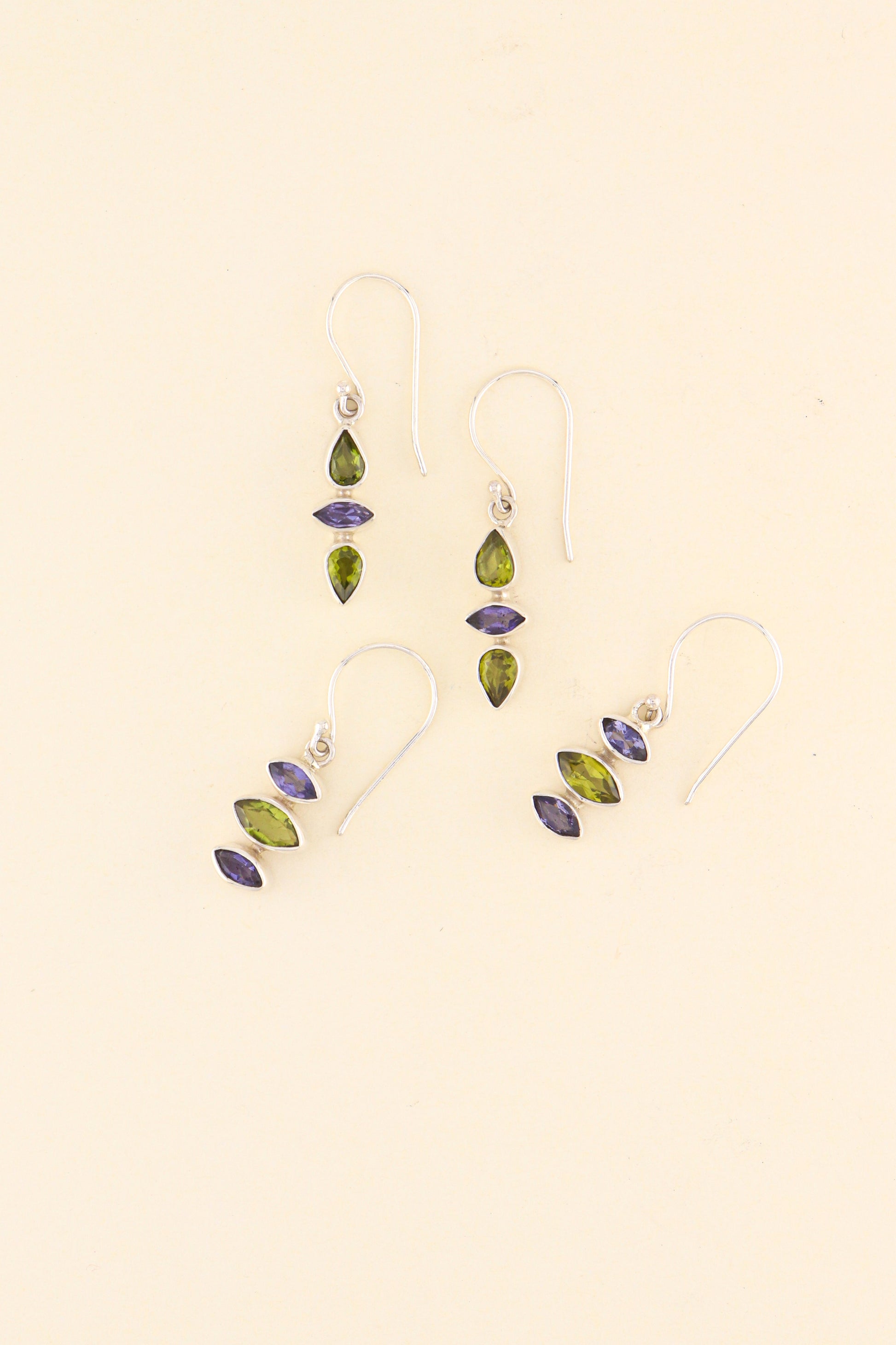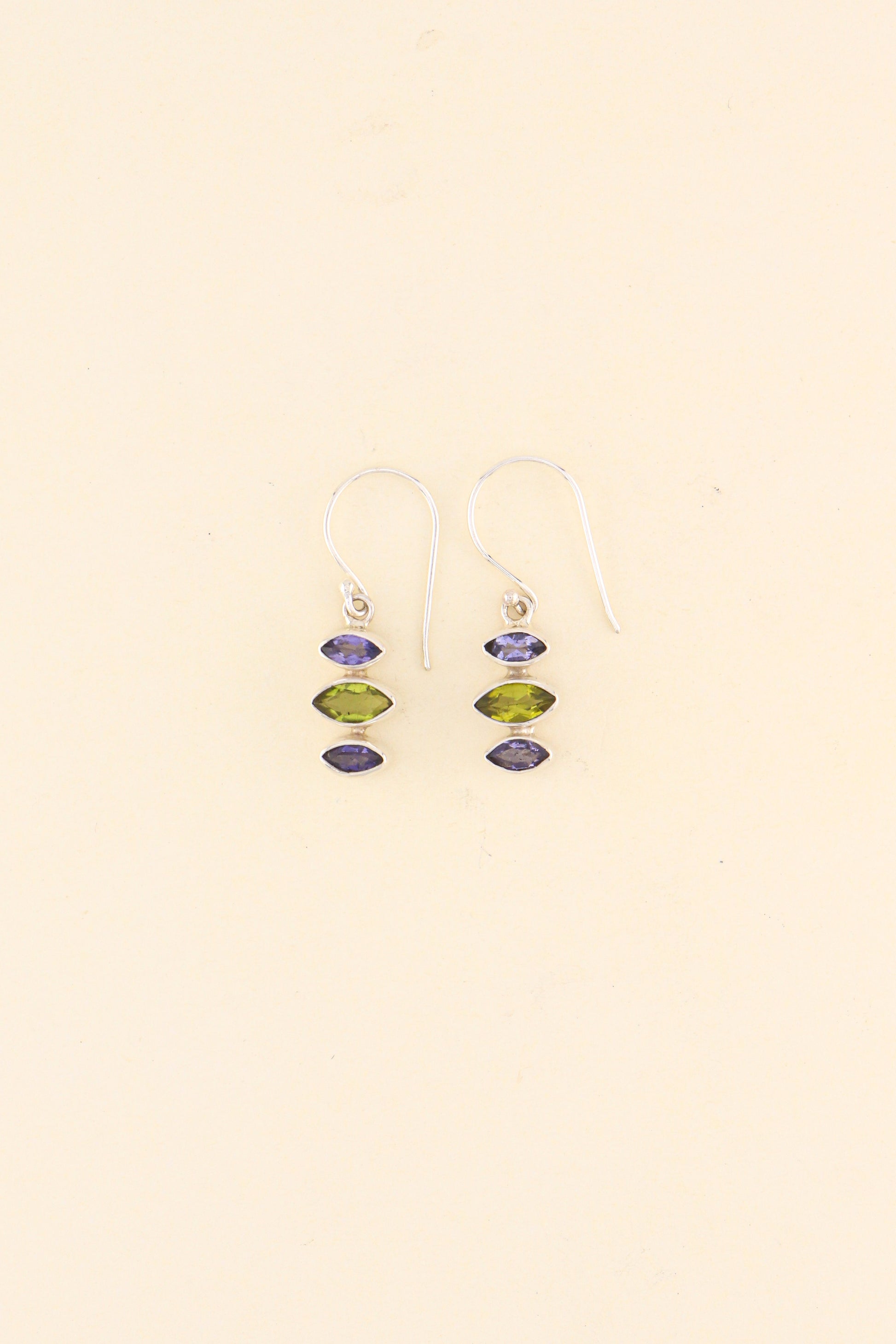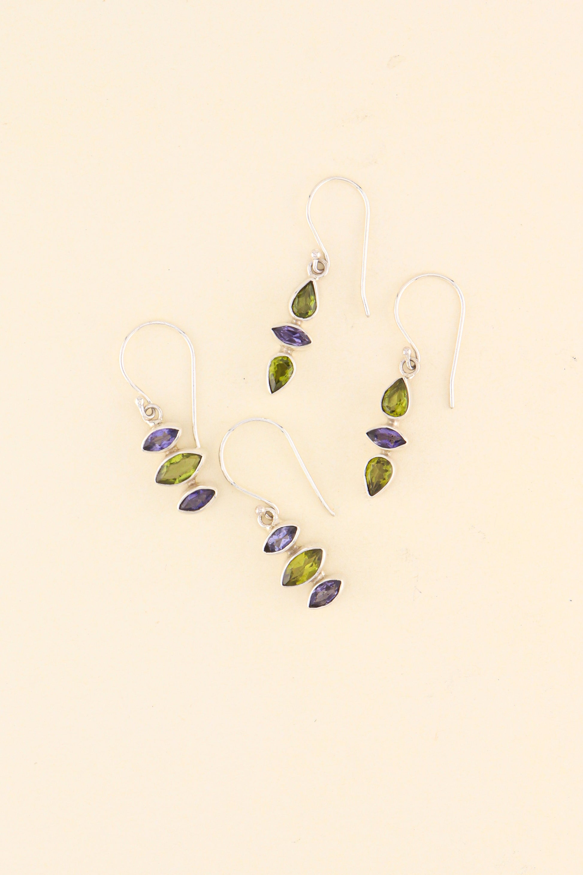Our multi stone design pair of earrings in Peridot and Iolite is an elegant piece of jewellery to add to your collection. The stones are set with 925 sterling silver.
