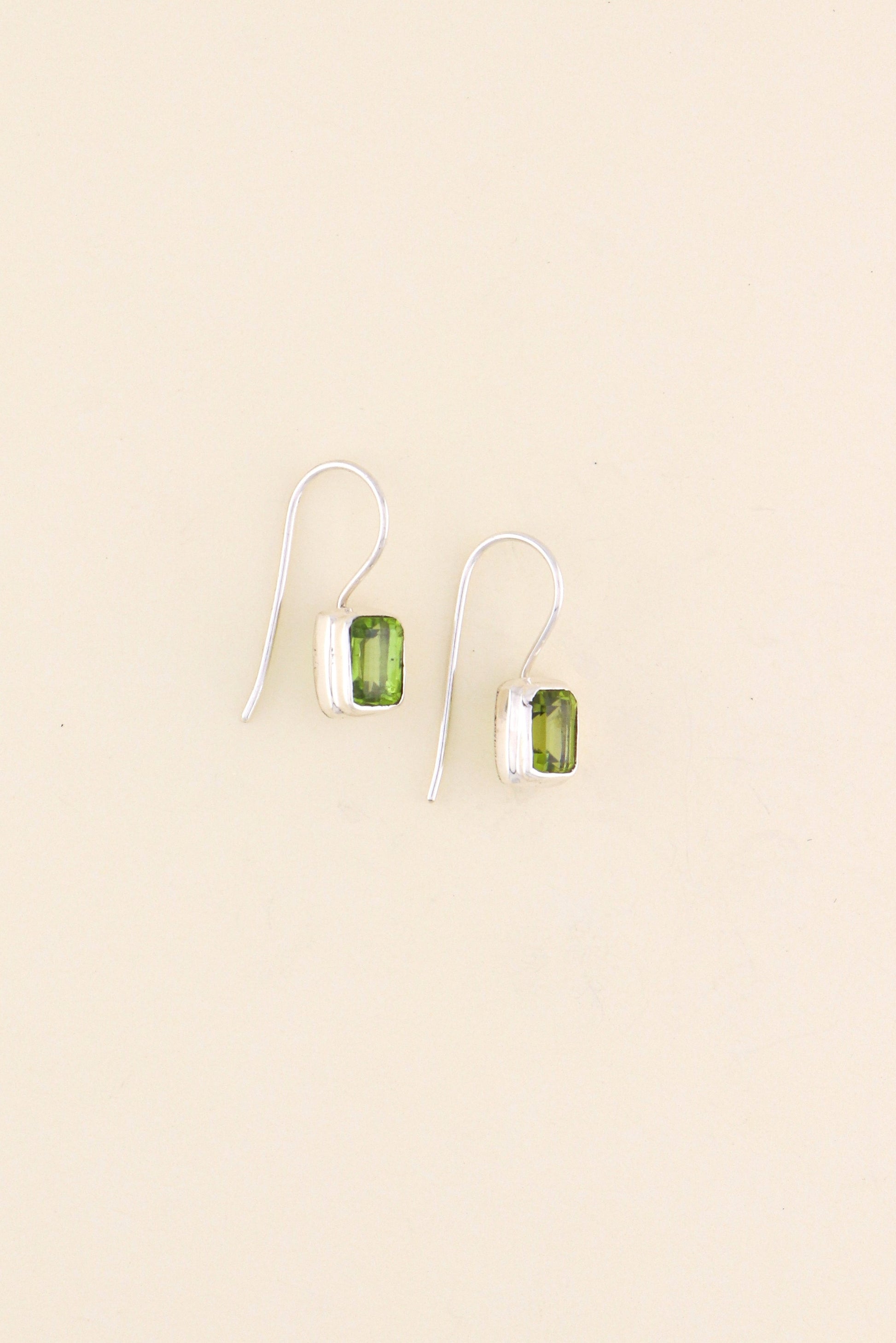 This lovely pair of Peridot earrings is a go-to to wear everyday. The stones are set on a 925 sterling silver double bezel.