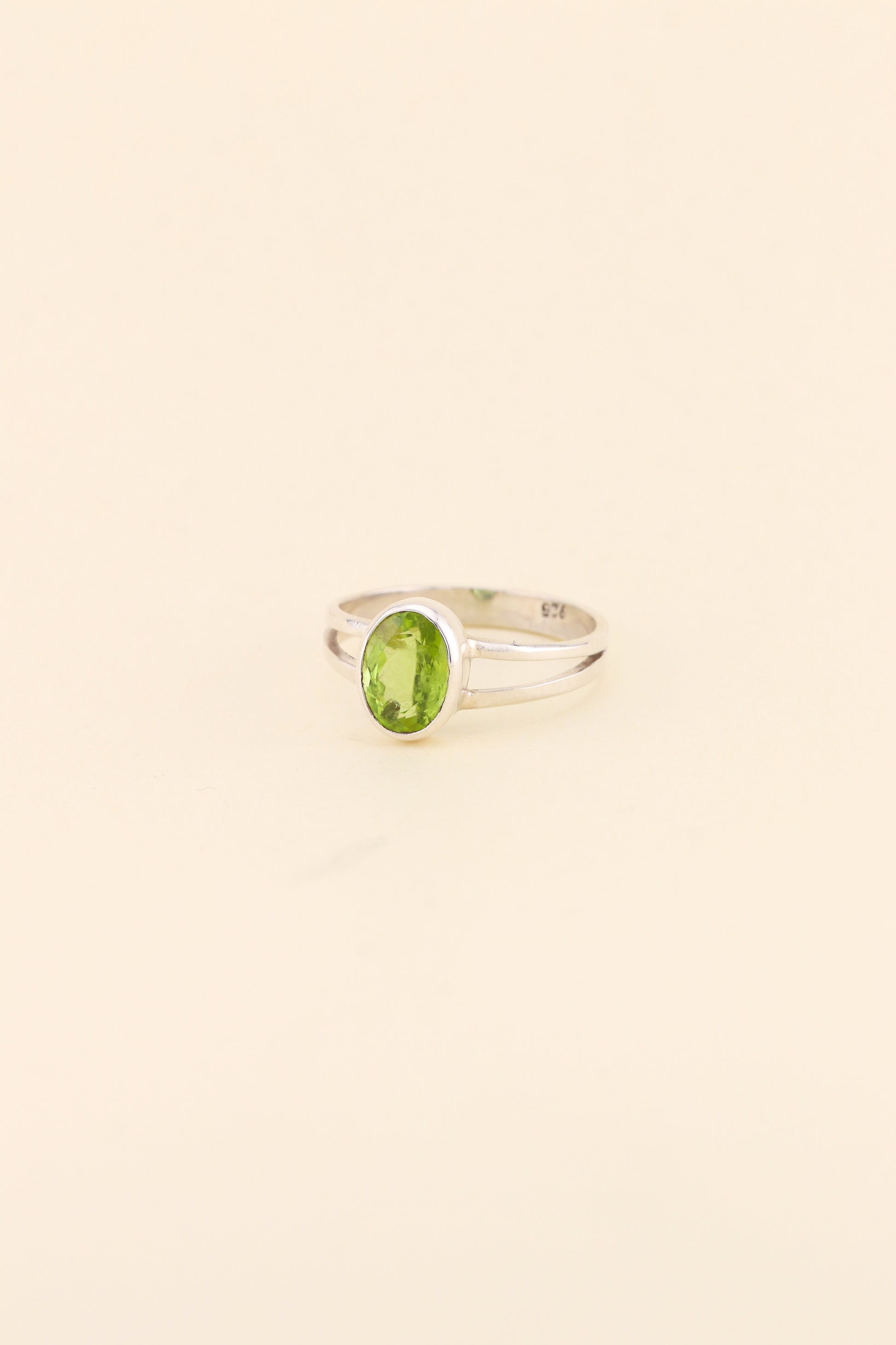 Our double band ring design in Peridot is made with high quality stones. It's a very elegant piece of jewellery to have in your collection. The ring is made using 925 sterling silver.