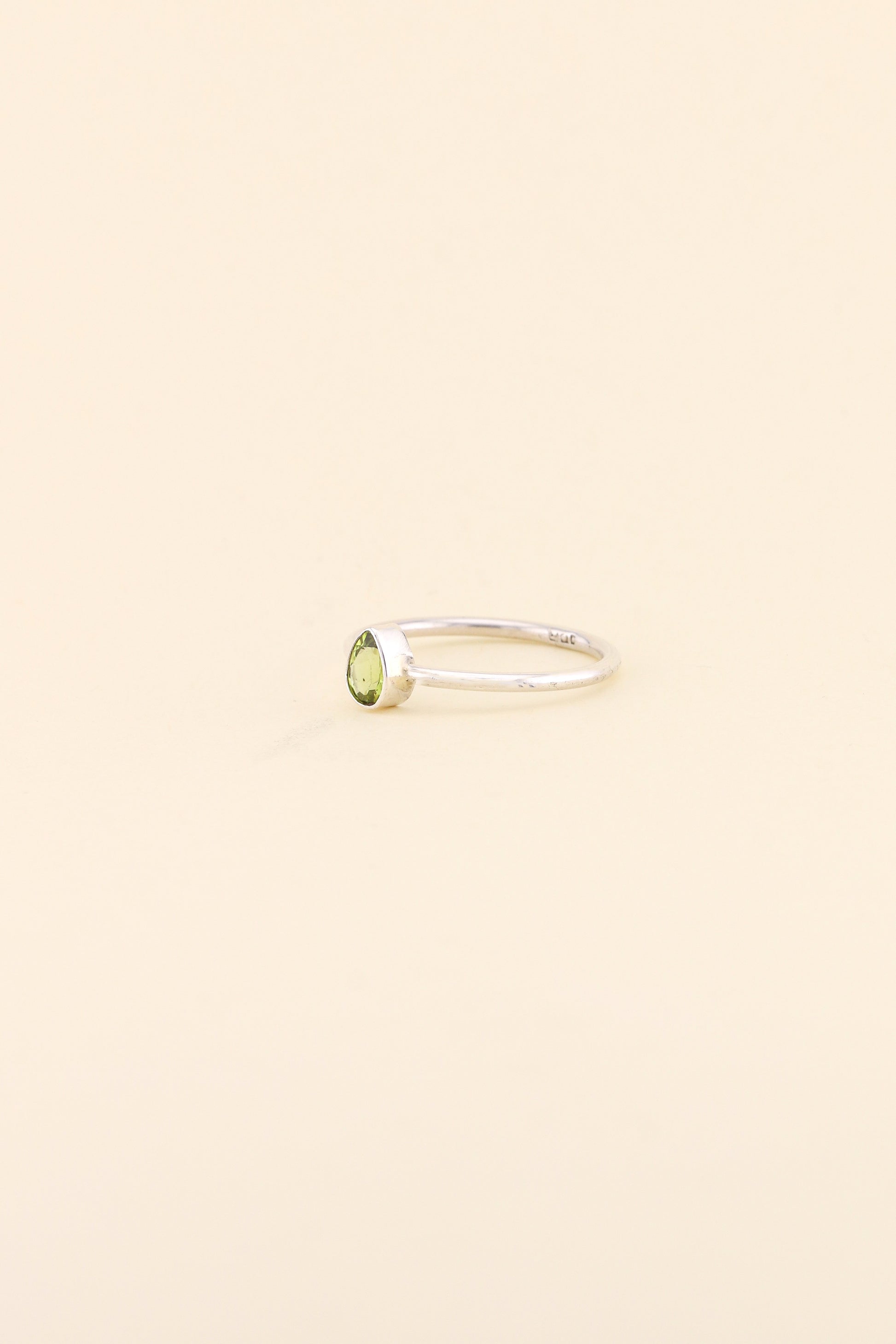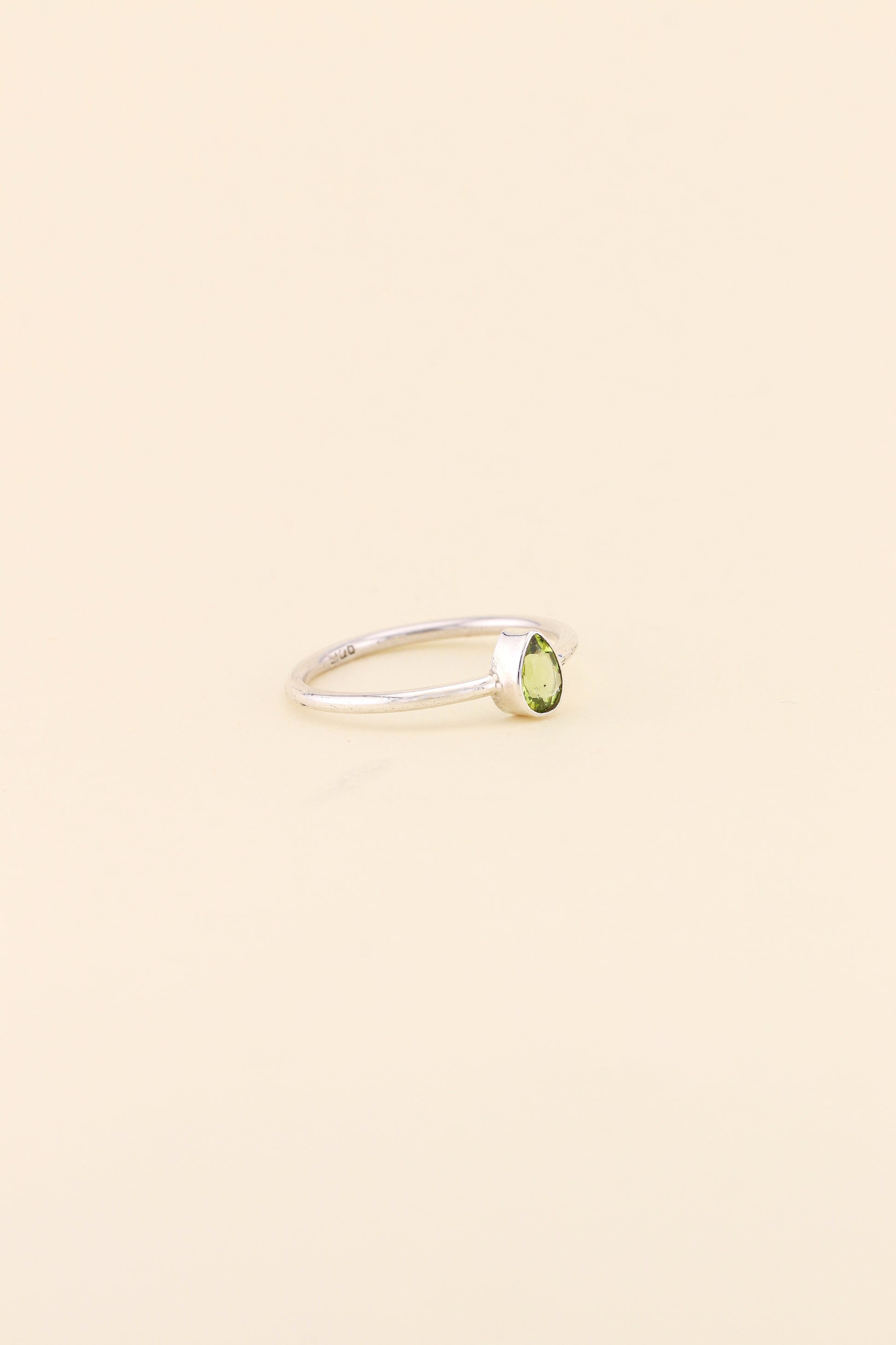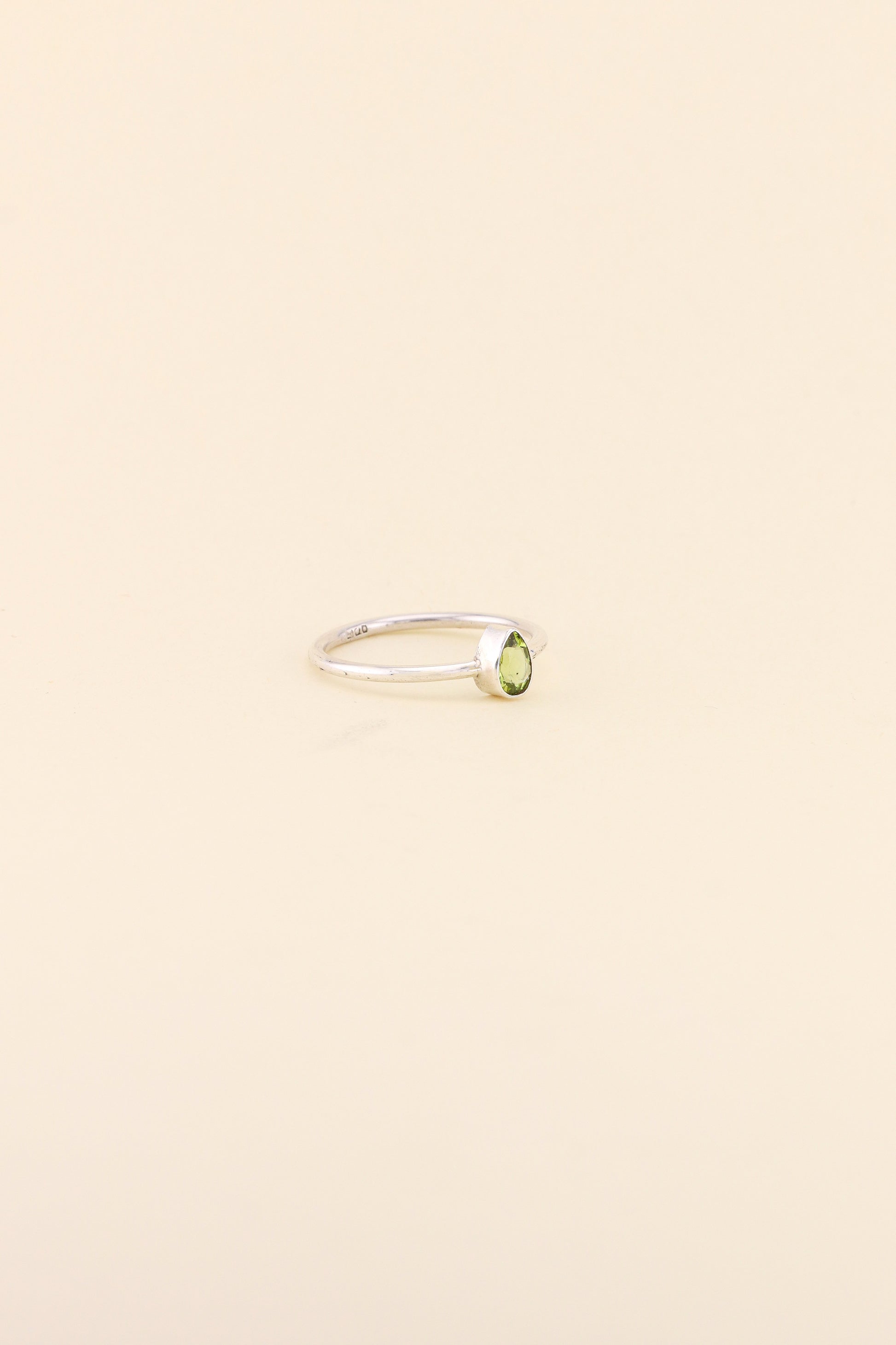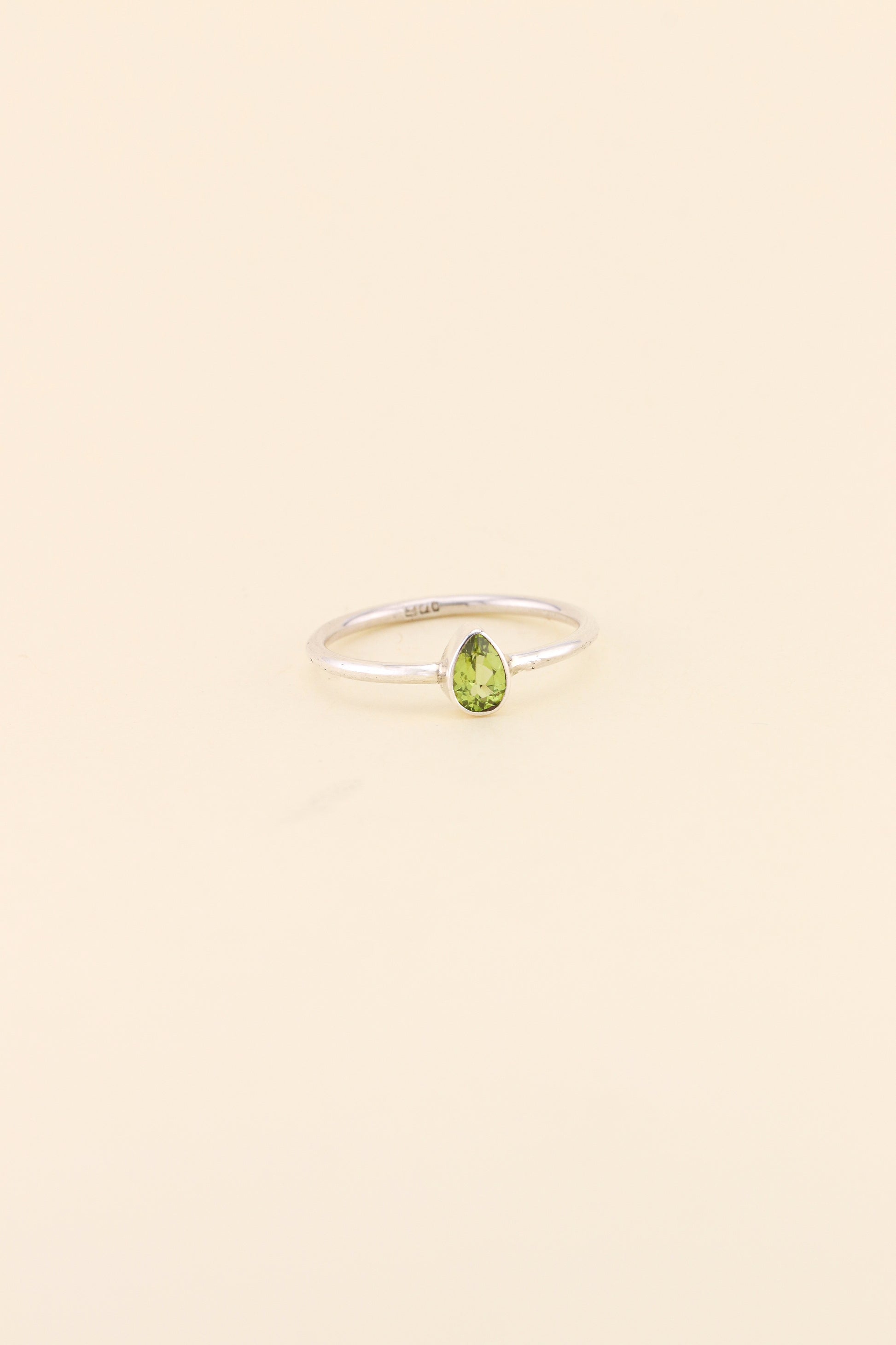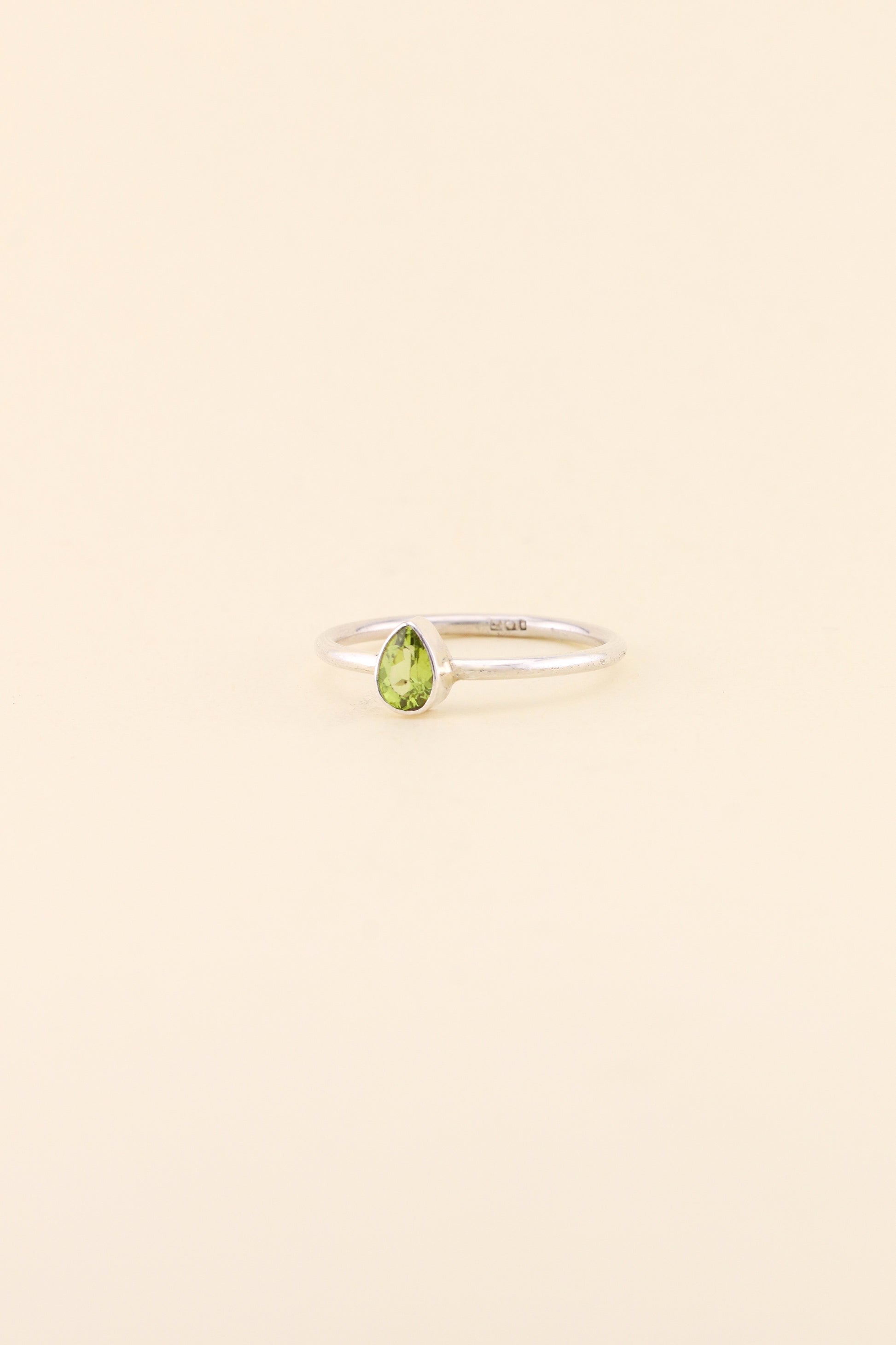 Our simple band ring design in tear drop Peridot is the perfect ring for stacking or to wear on its own. The ring is made using 925 sterling silver.