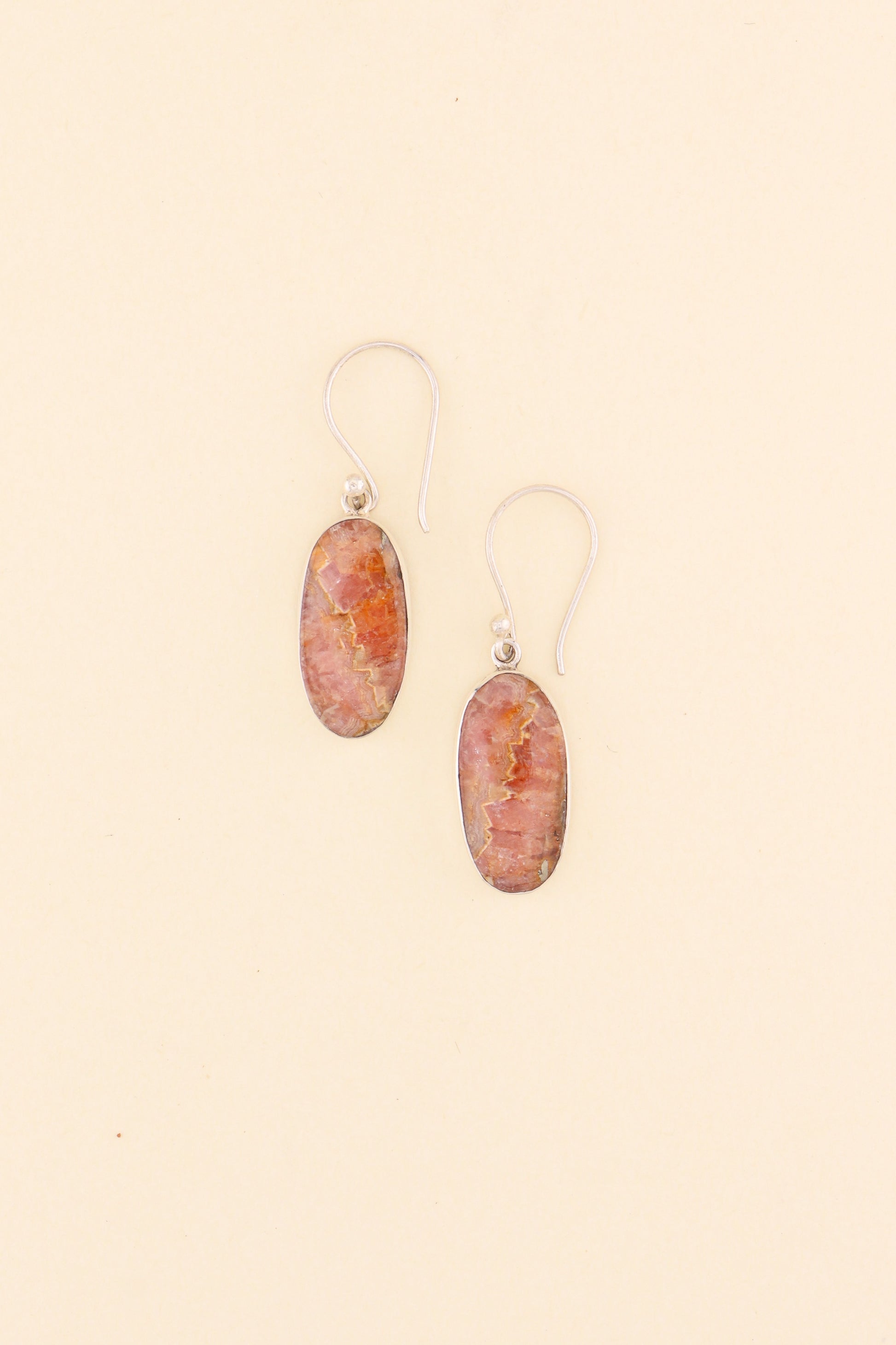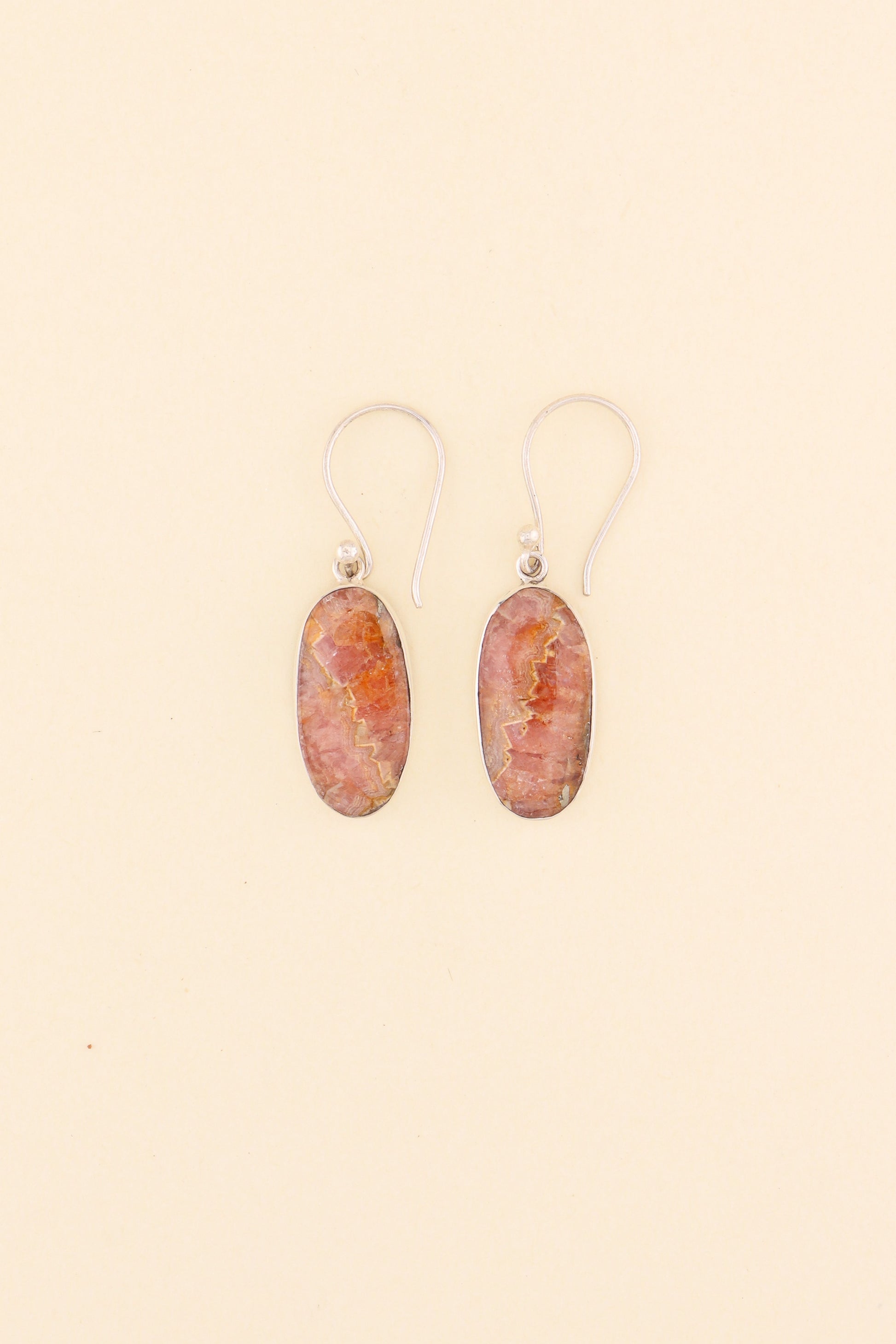 The pink/orange Rhodochrosite stones showing lovely pattern make a beautiful pair of earrings. The stones are set with 925 sterling silver.