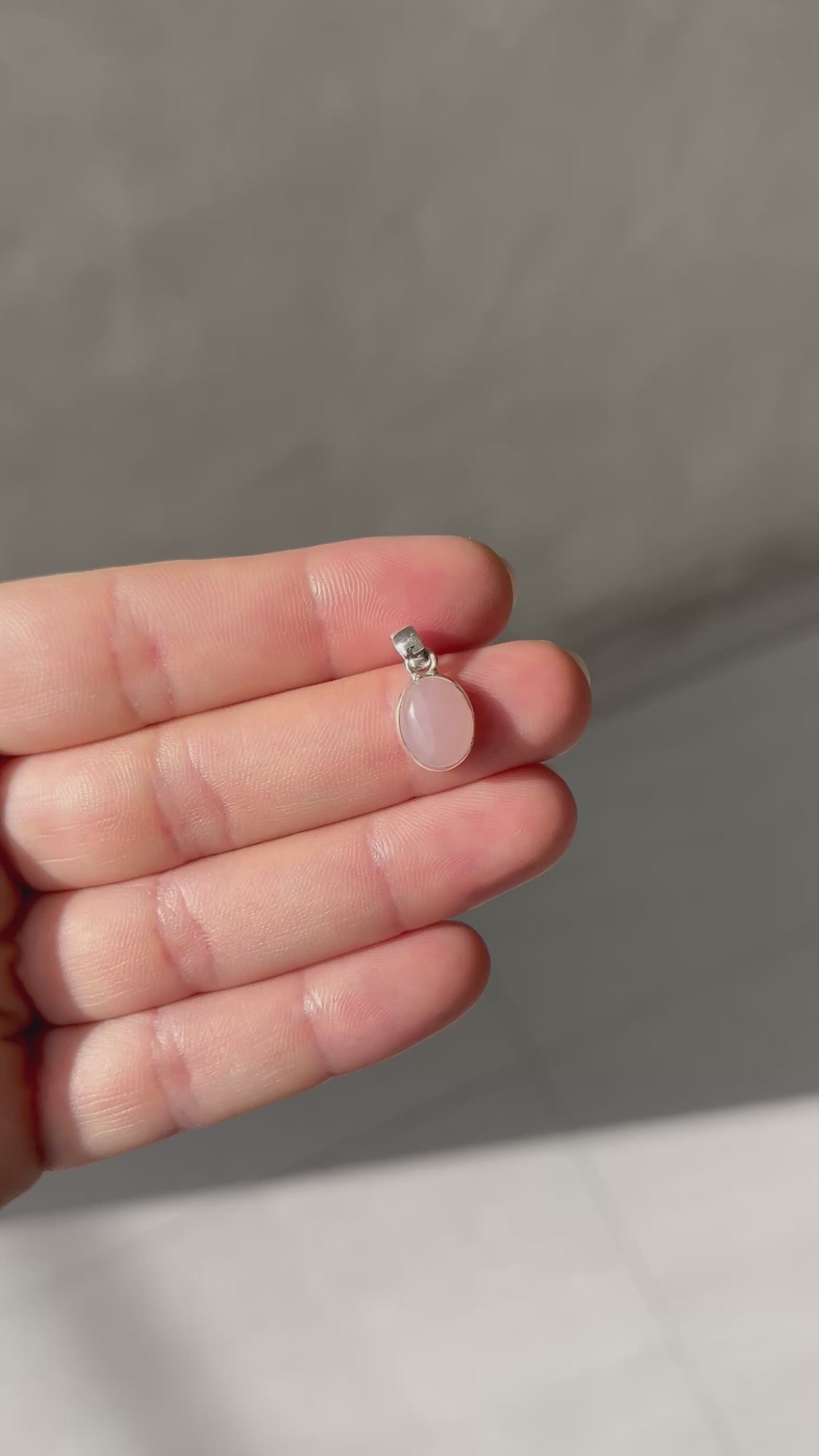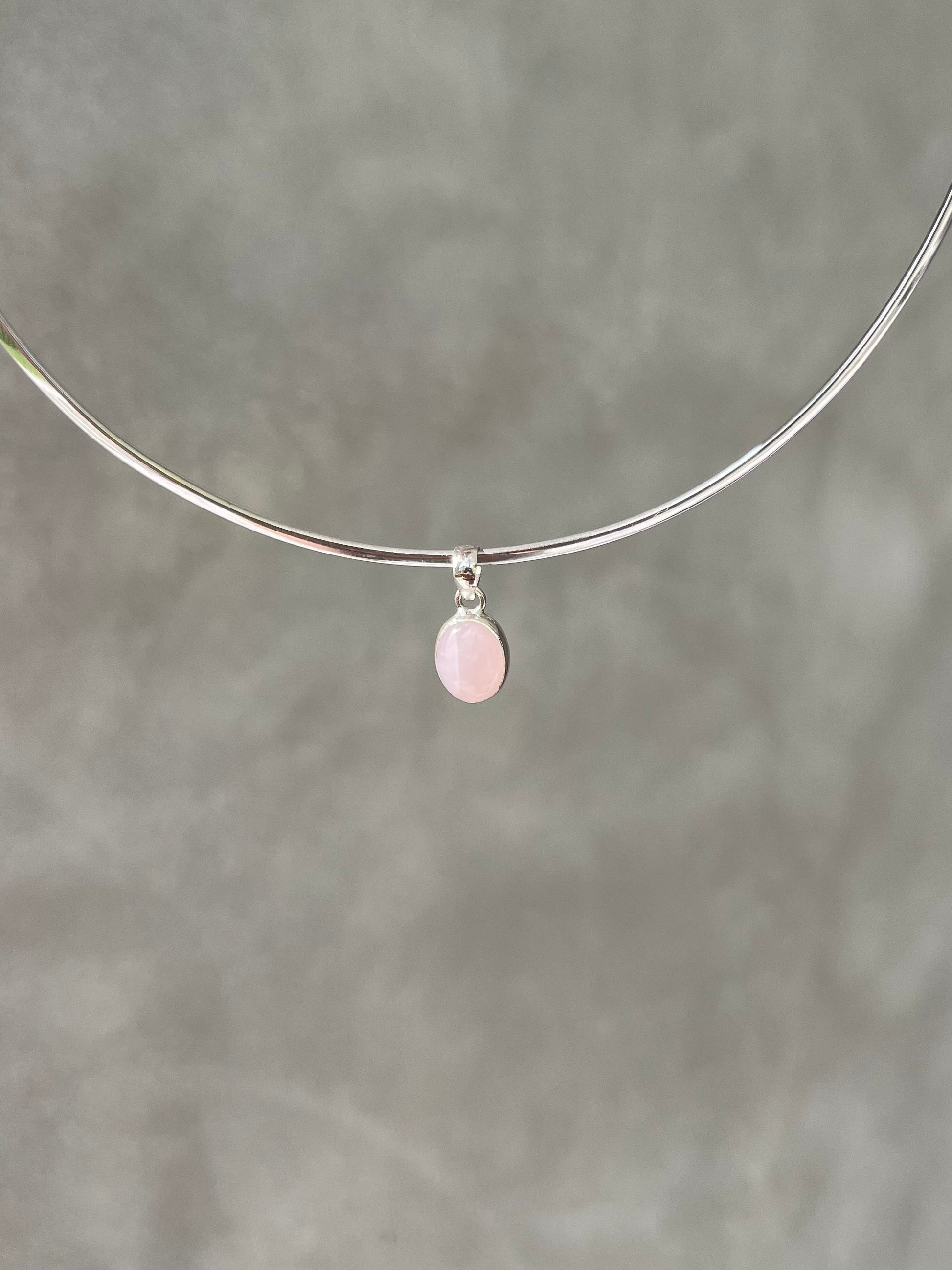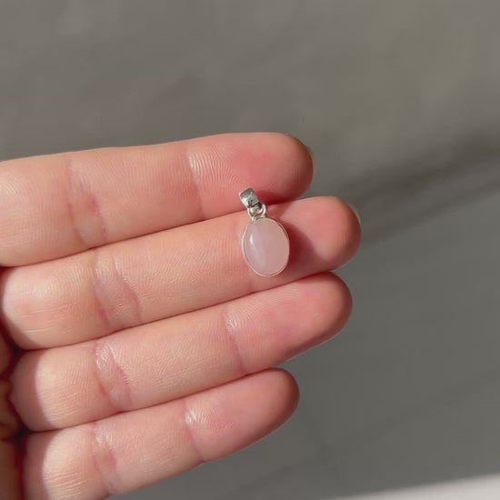 Our mini Rose Quartz pendant is the go-to piece of jewellery for everyday. The stone is set with 925 sterling silver.
