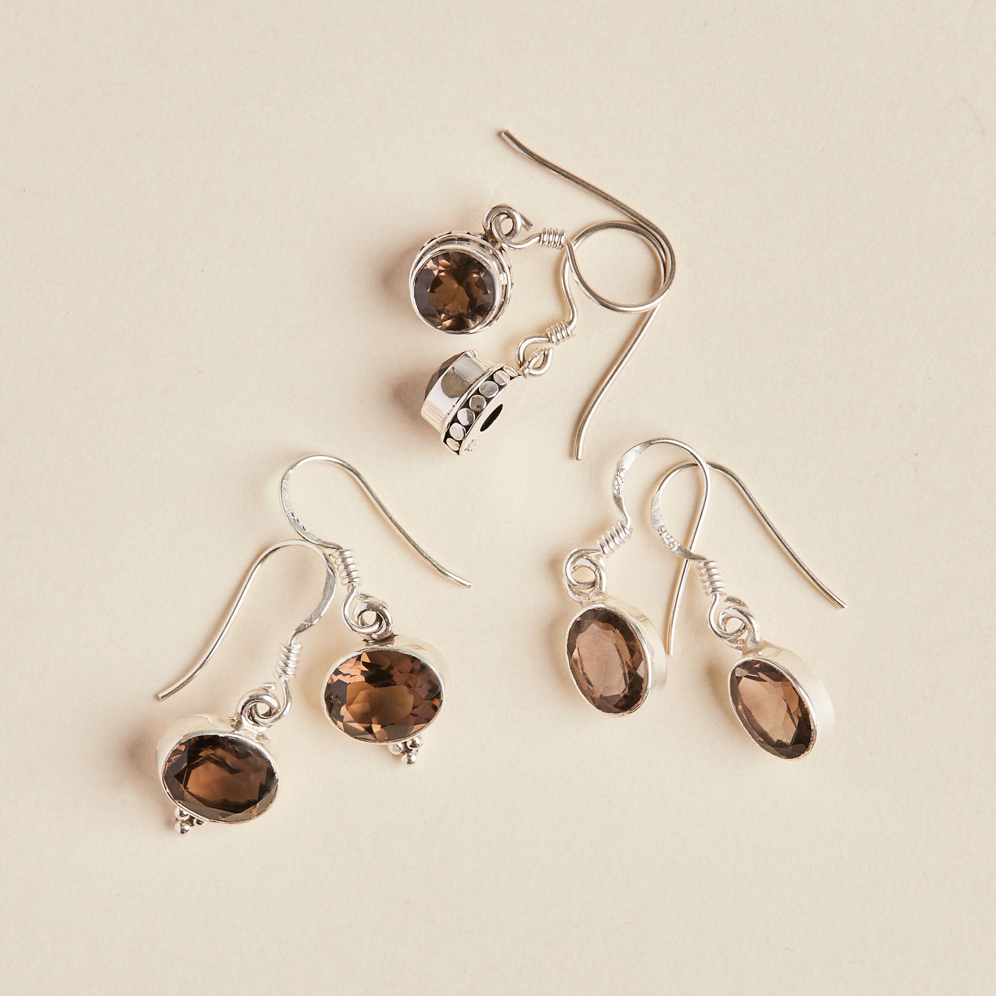 These little faceted Smoky Quartz earrings make a great go-to for everyday wear. They are made with 925 sterling silver.