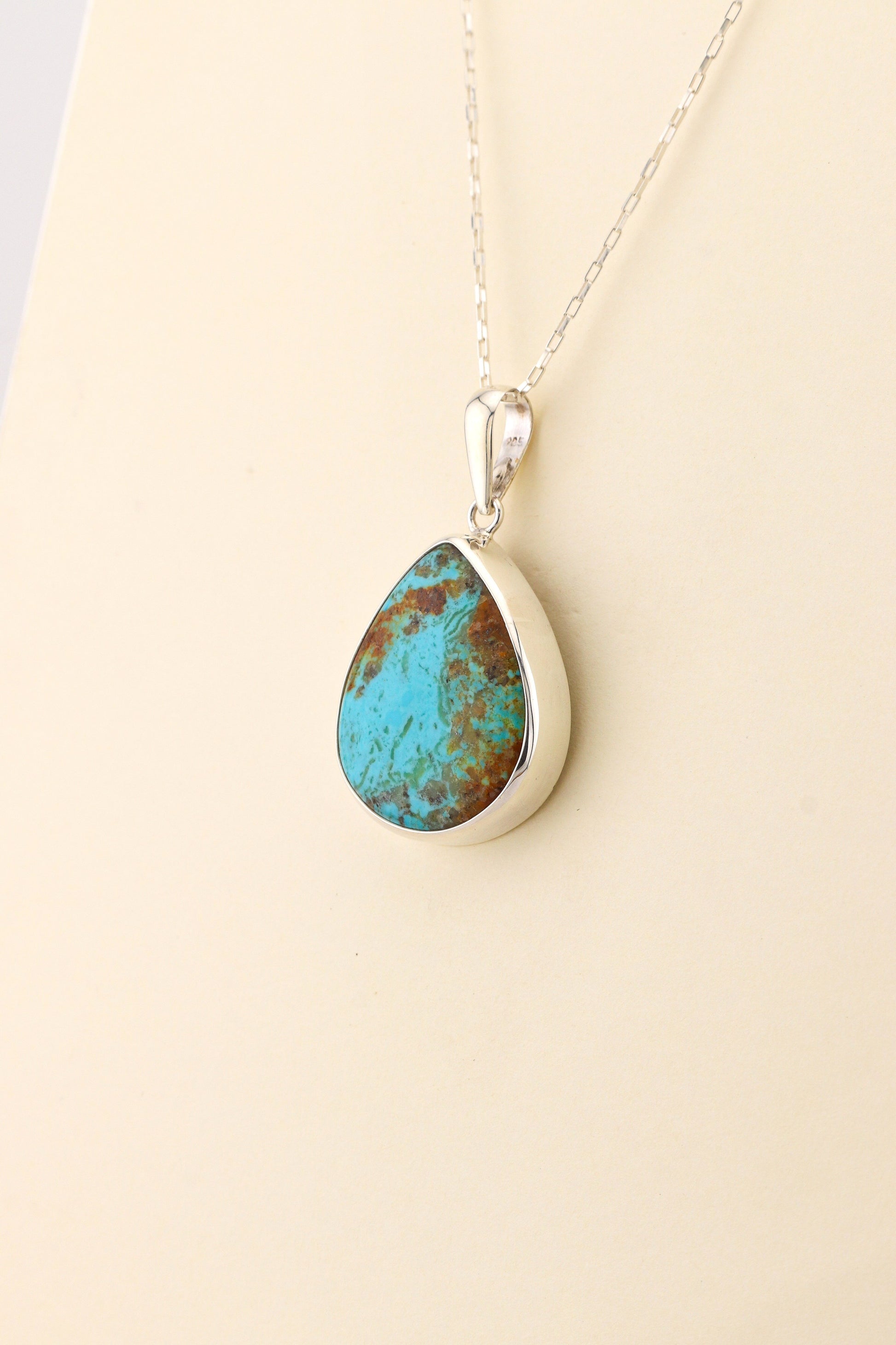 This gorgeous Turquoise called Campo Frio is found in Mexico. The stone is set on a 925 sterling silver bezel.