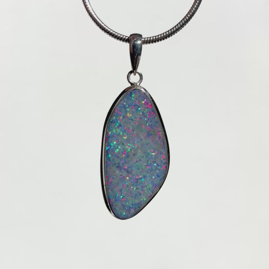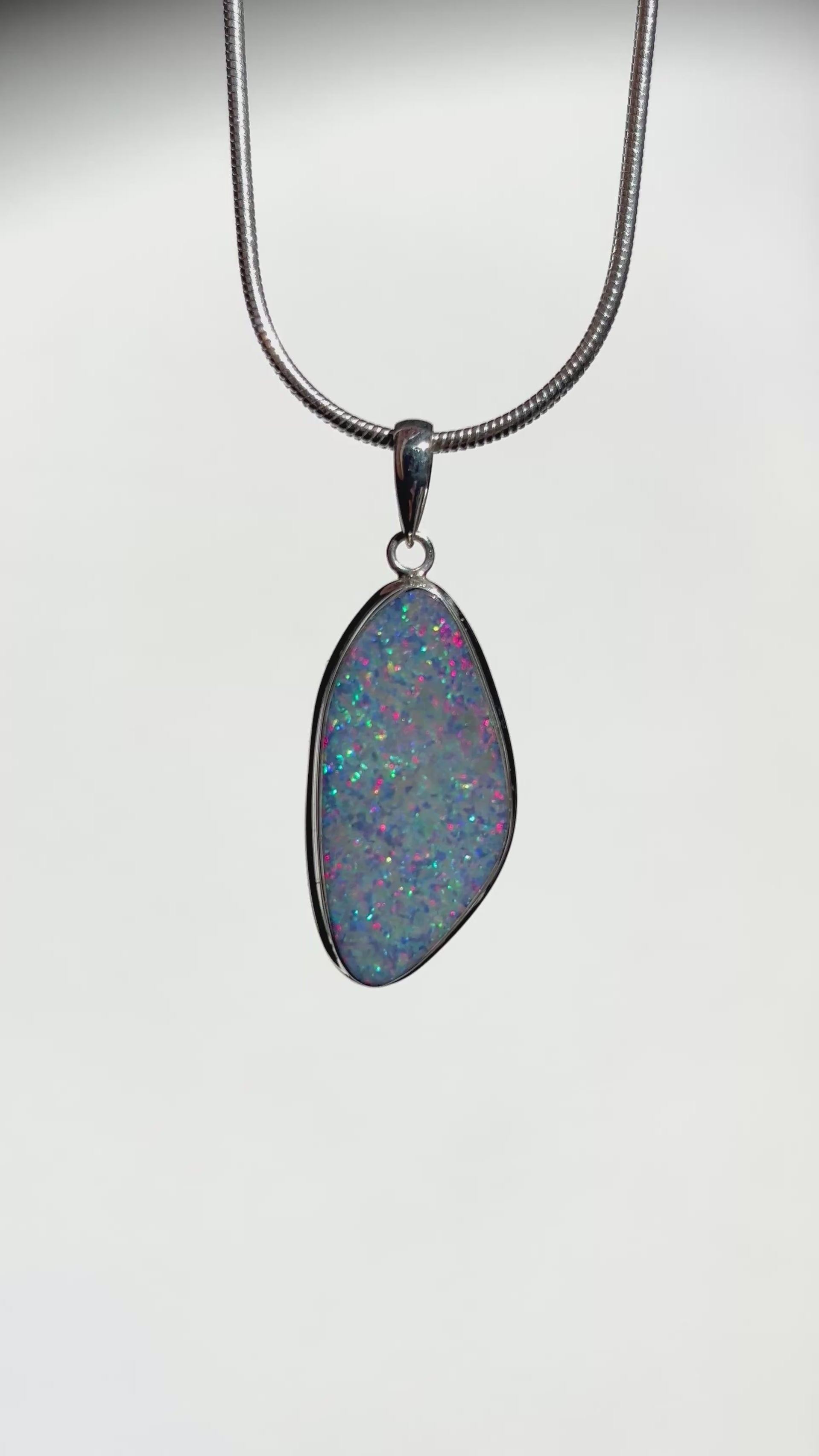 This XXL Australian pendant is a statement piece to cherish forever. The stone is bright with lots of colors coming through, especially pink called 'fire'. The stone is set on a 925 sterling silver double bezel.